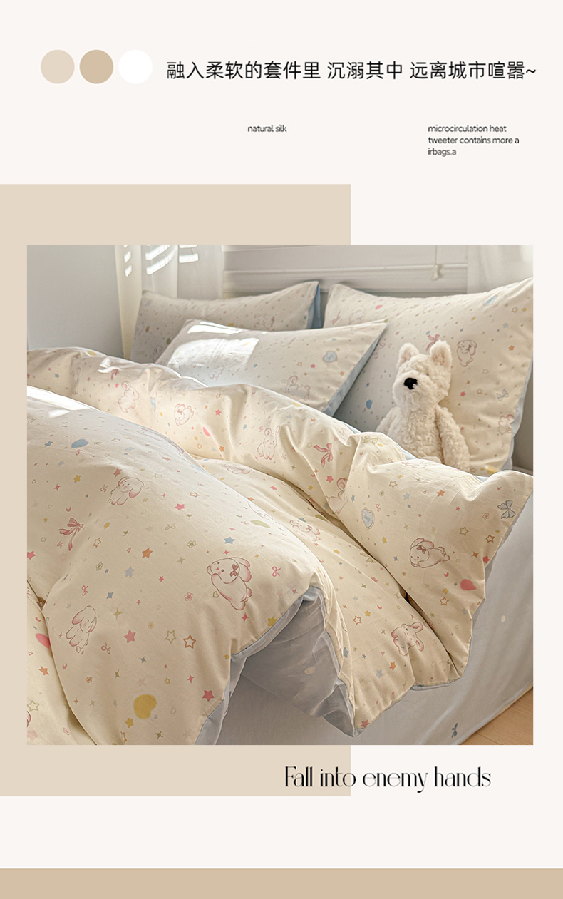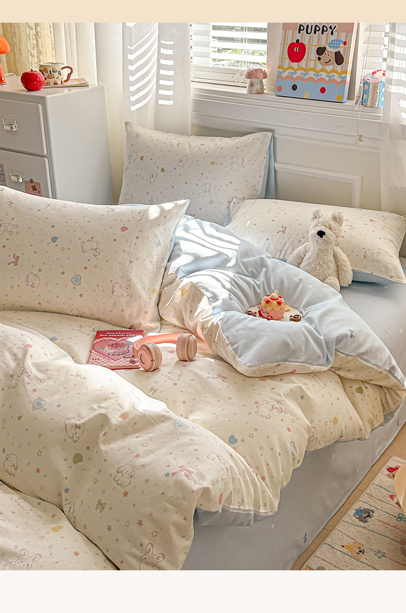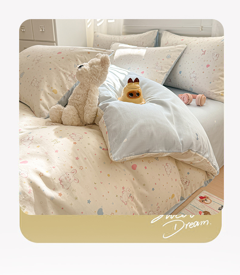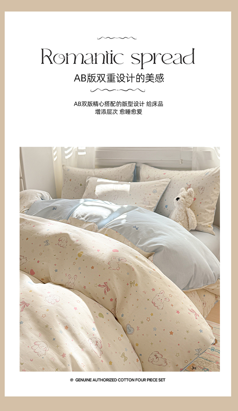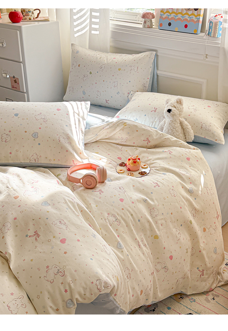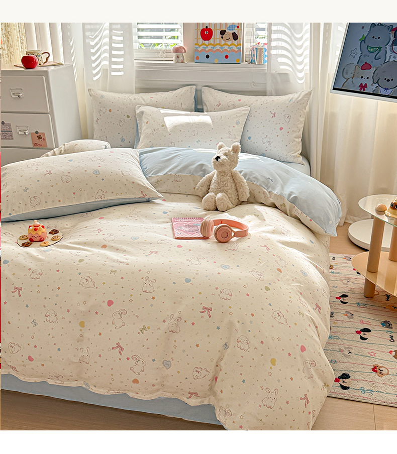 当前位置: 91家纺网 > 商品网购 > 床品套件 > 四件套 > 全棉普通四件套 > 曼之夏 2025新款全棉纯棉印花四件套 兔兔甜心