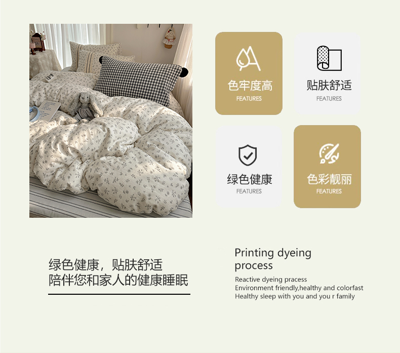 商品名称:三朵家纺 2026新款ins风全棉少女系花边印花系列四件套 繁花点点