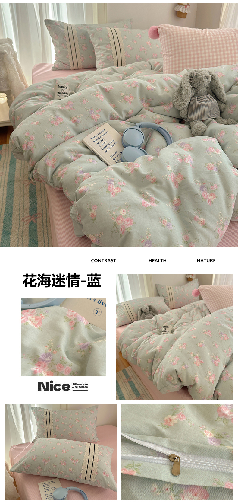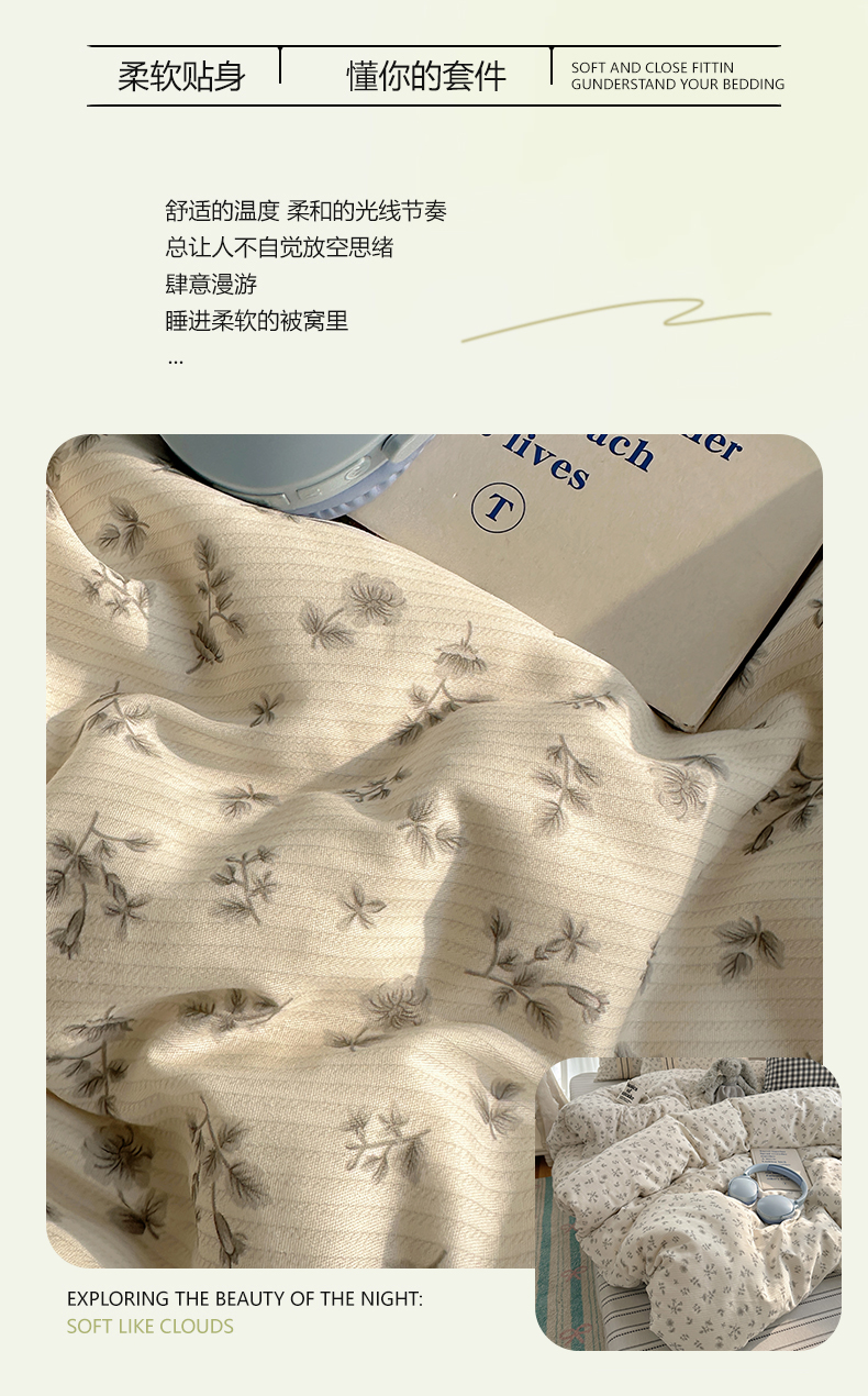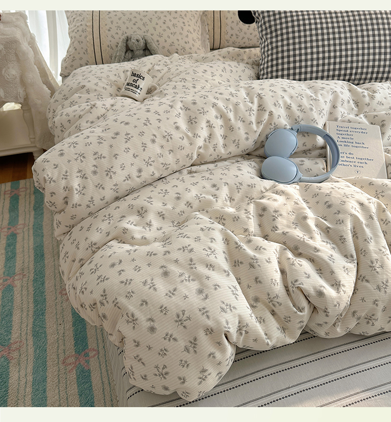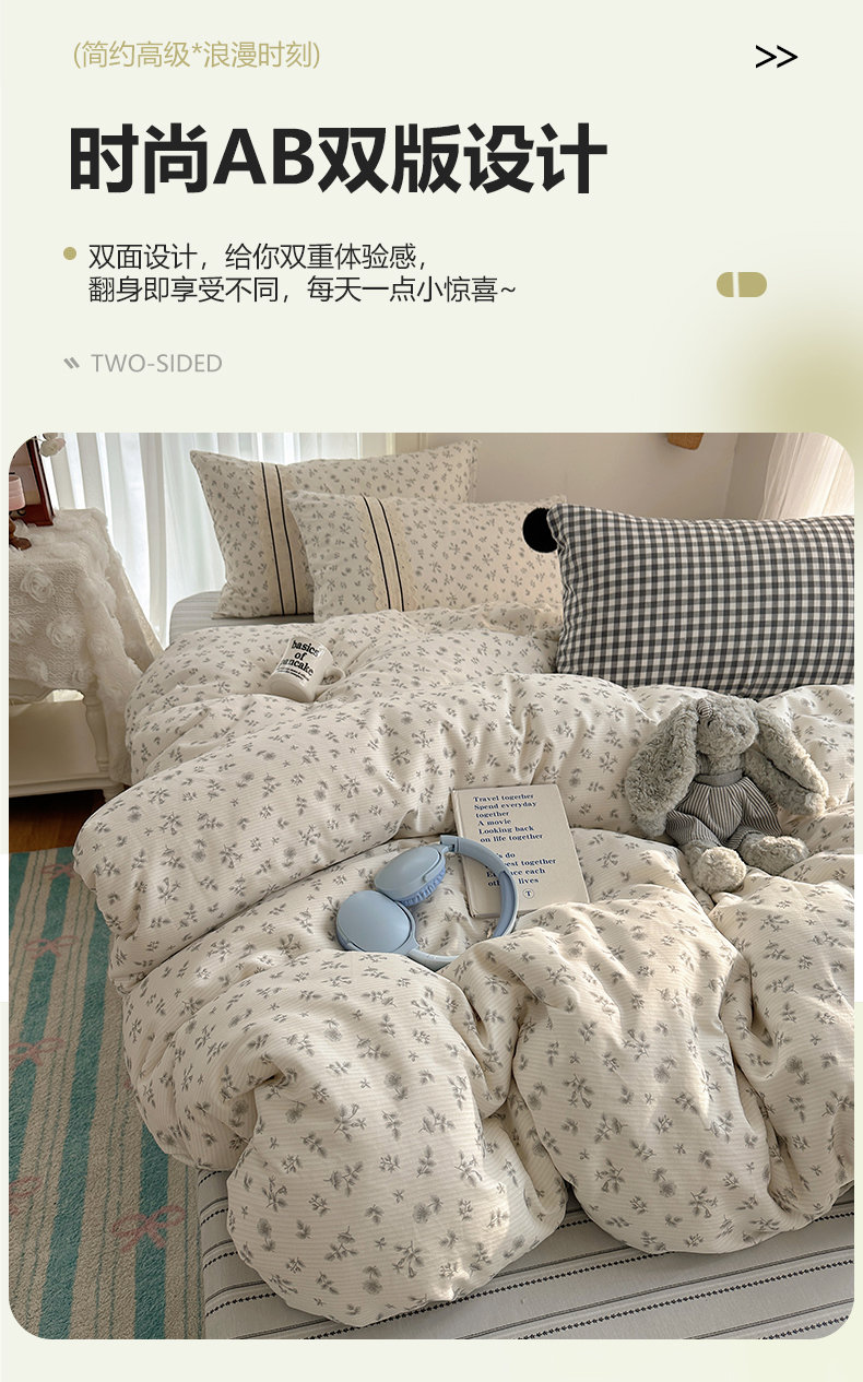 (总)三朵家纺 2026新款水洗棉碎花INS博主风混搭全棉四件套,漫花,莫里,南乔