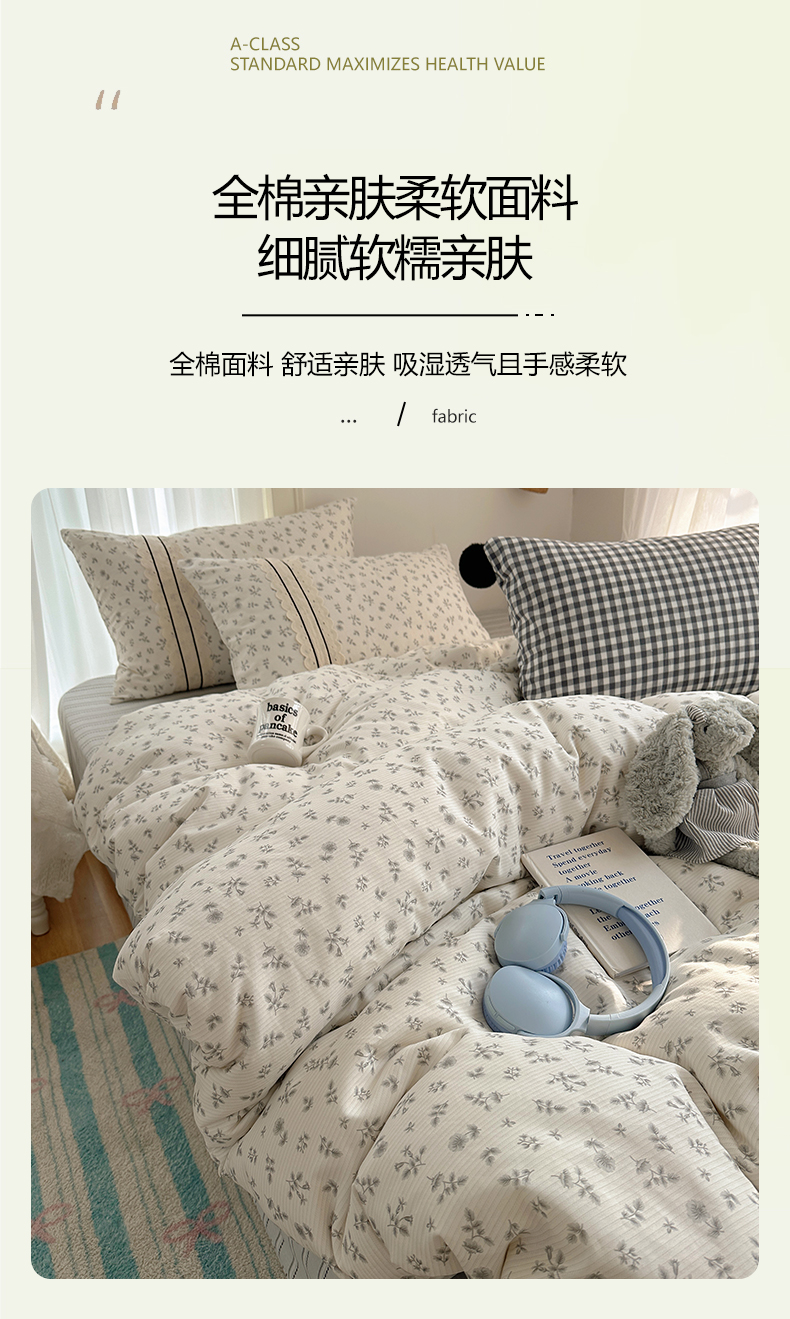 (总)三朵家纺 2026新款A类云柔水洗棉韩版法式花边云朵棉四件套,春夕集,罗逸维绿,如漫,惜花灰绿,赫拉