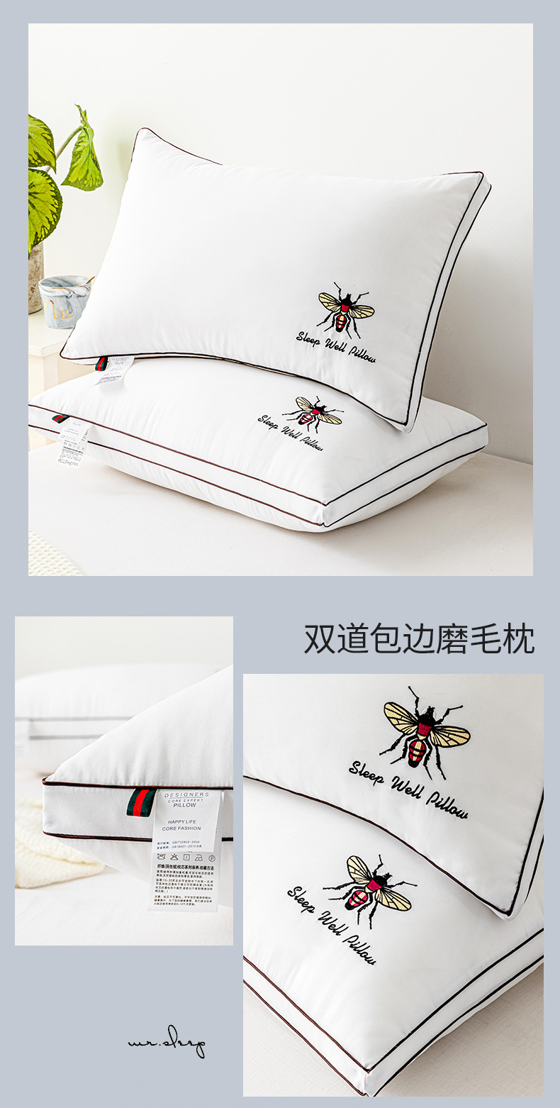 商品名称:仁宇枕业 2025新款新品蜜蜂款羽丝绒舒适枕头枕芯 蜜蜂双边-蓝色