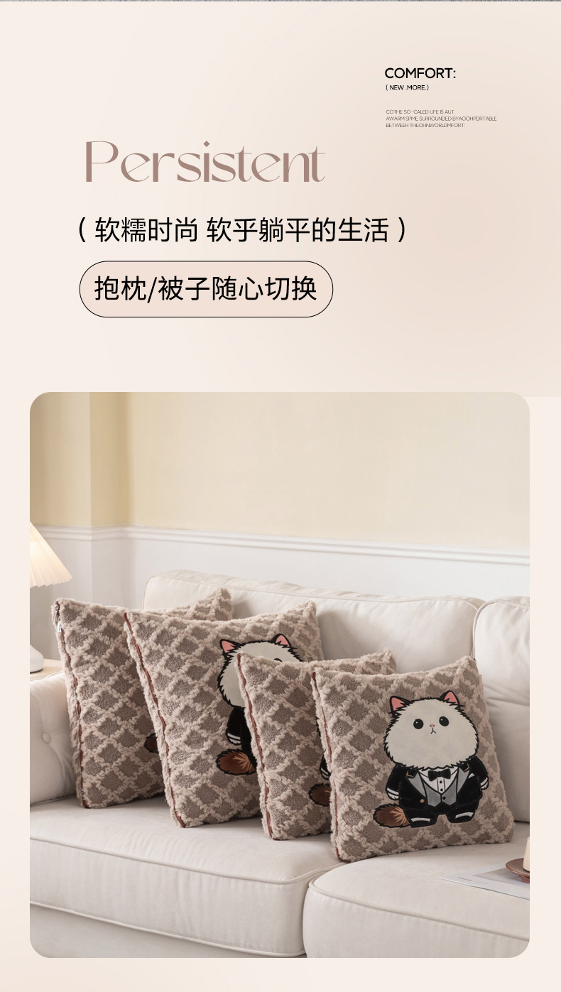 (总)宝马家纺(原梦童画) 2025新款加厚抱枕被绅士猫,绅士猫棕色,绅士猫灰色,绅士猫卡其色