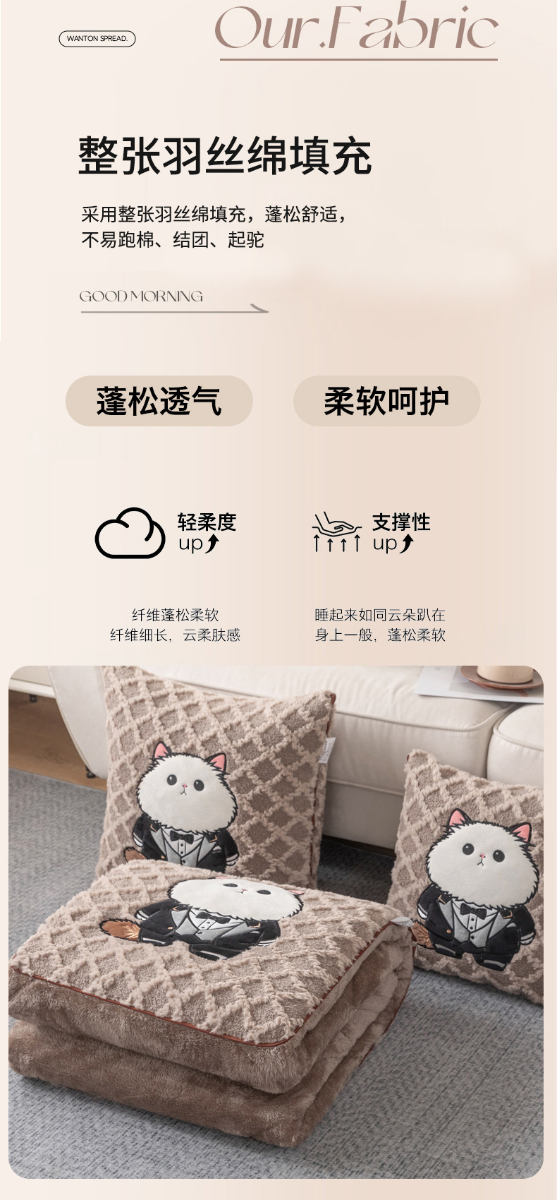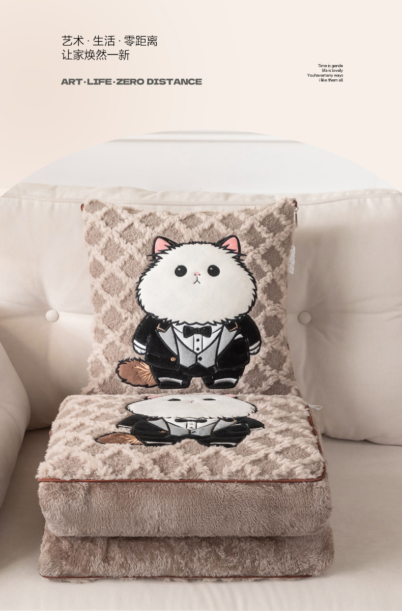 (总)宝马家纺(原梦童画) 2025新款牛奶绒贴布绣抱枕被可爱猫咪,猫咪-咖