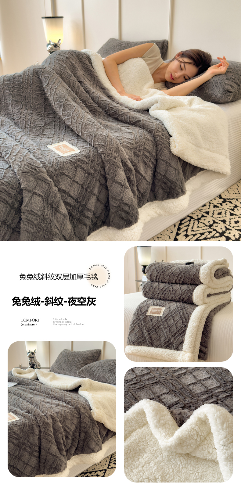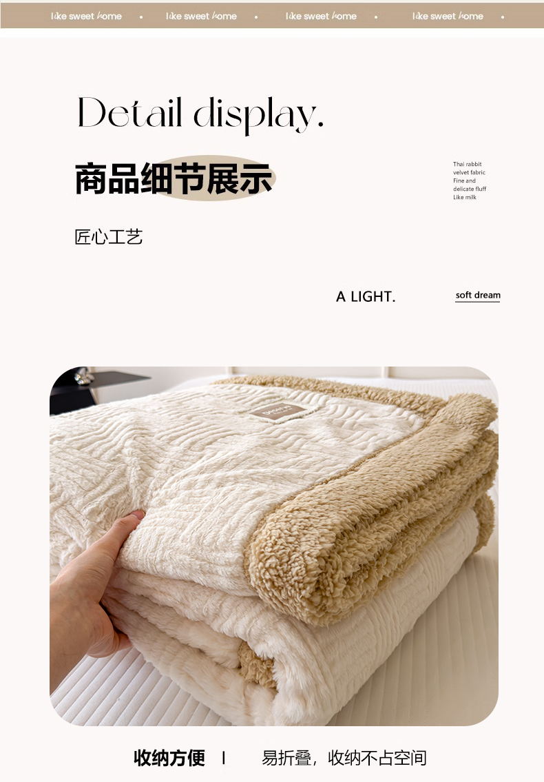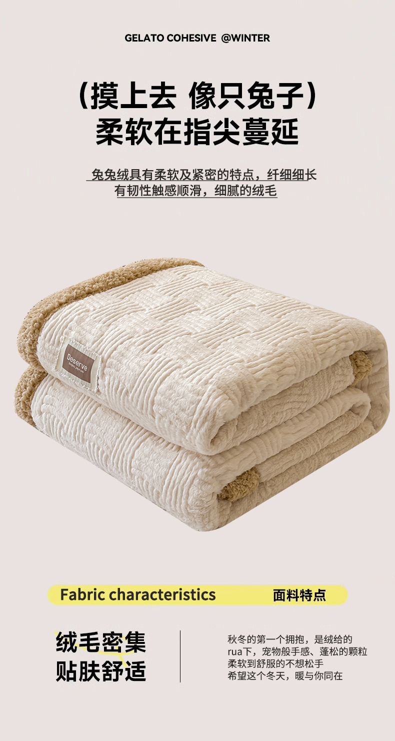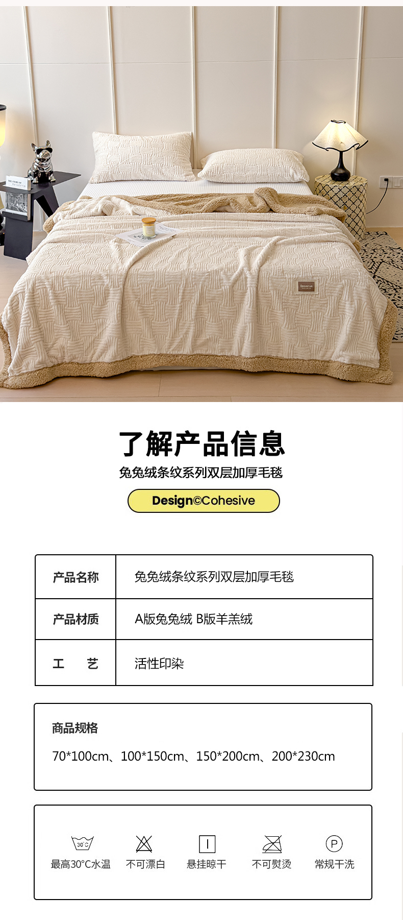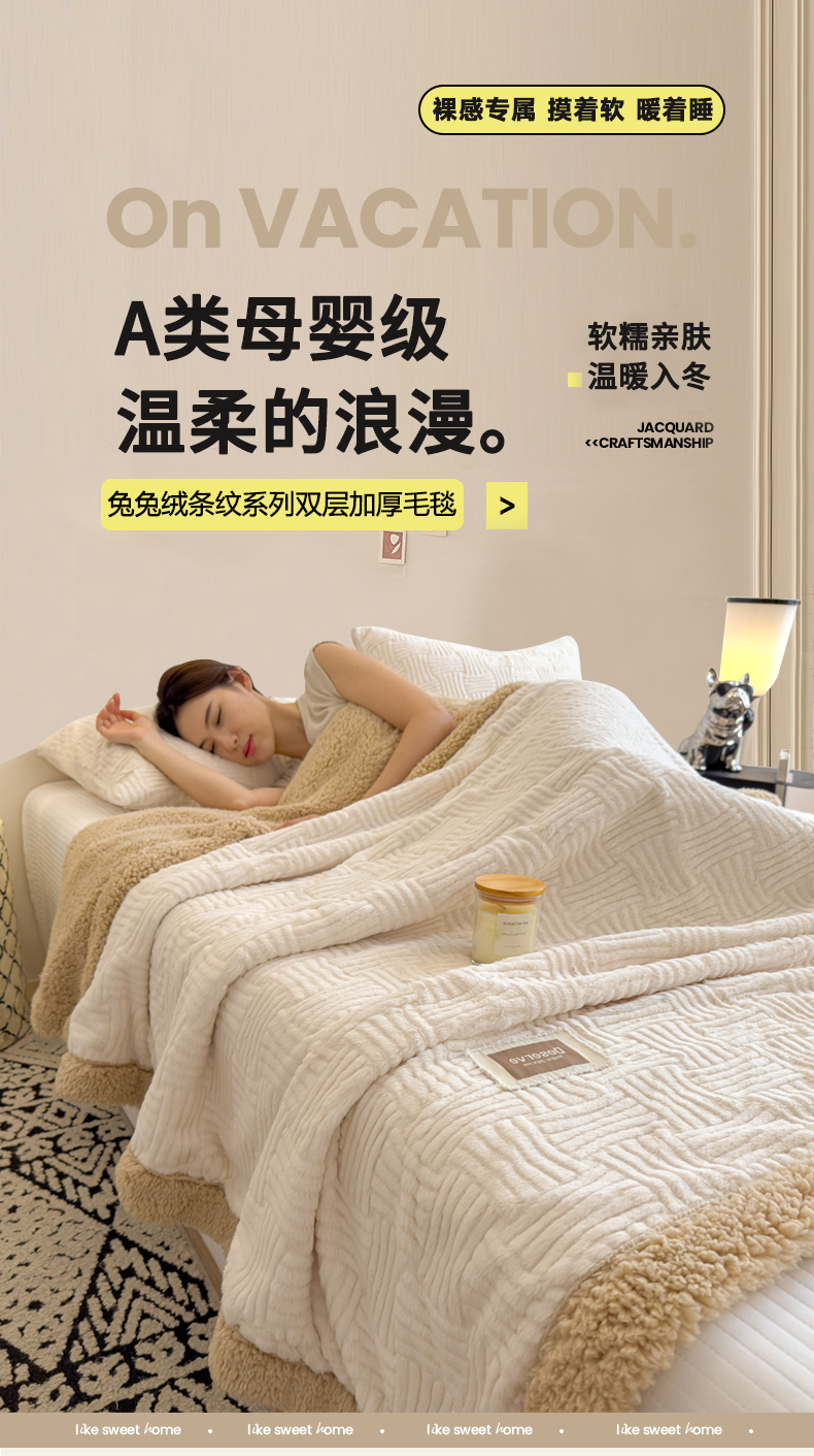 当前位置: 91家纺网 > 商品网购 > 毛毯休闲毯绒毯 > 毛毯 > 慕木家纺 2025新款A类高克重加厚兔毛绒双层毛毯斜纹条纹系列(跨境首选提供买家秀) 兔兔绒-条纹-奶杏咖