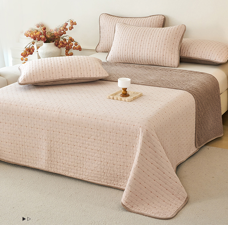 莎果家纺 2025新款60支%100纯棉高克重宝宝绒小米粒刺绣床盖 小米粒-绒紫