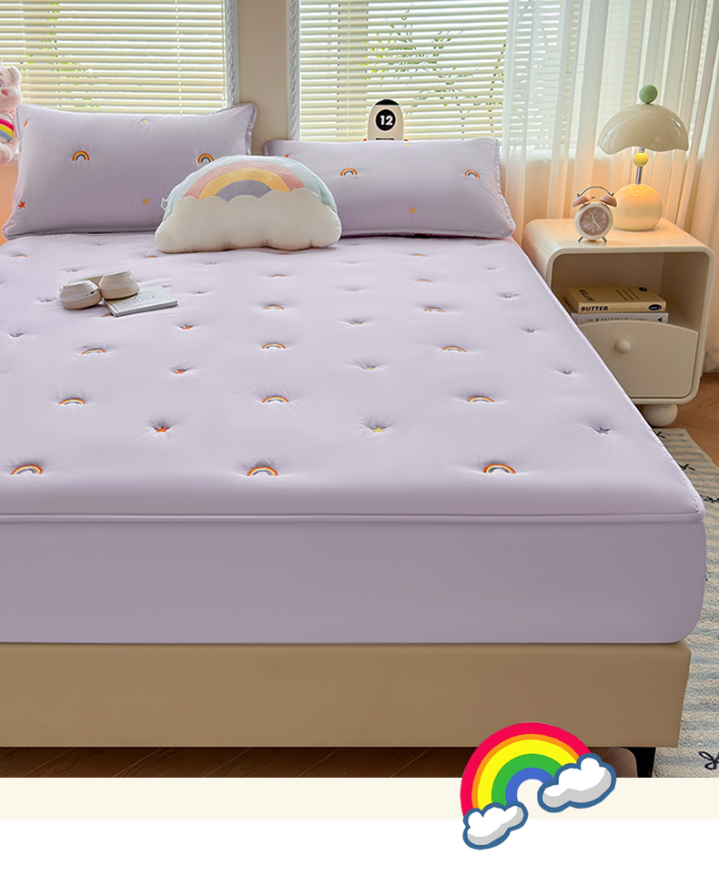• 91家纺网 家纺一手货源 找家纺 糯米猪家纺 2025新款A类卡皮巴拉全棉夹棉床笠 彩虹-紫