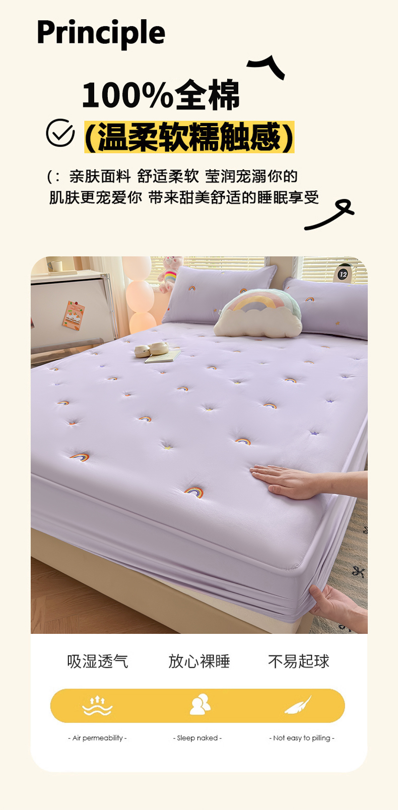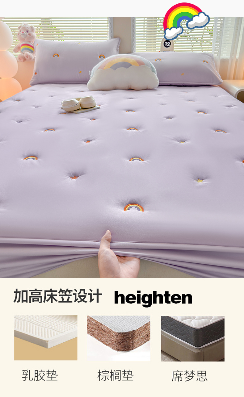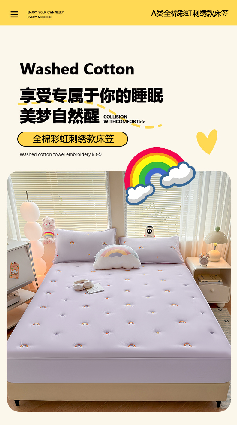 (总)糯米猪家纺 2025新款全棉纯棉彩虹刺绣款床笠单品床笠床笠单件,组合图仅做展示不可下单,彩虹-米,彩虹-灰,彩虹-蓝,彩虹-紫,彩虹-鹅黄,彩虹-粉
