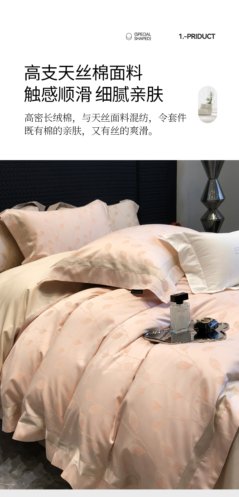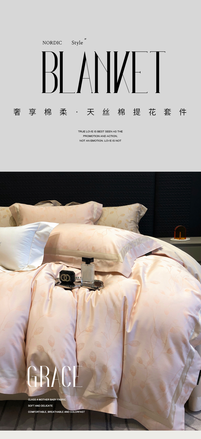 黑白森林2024款 100S支天丝棉提花四件套天丝全棉,芙拉维-裸灰,芙拉维-秋绿,圣露安-雾粉,圣露安-香槟,西西里-奶白,西西里-柔粉