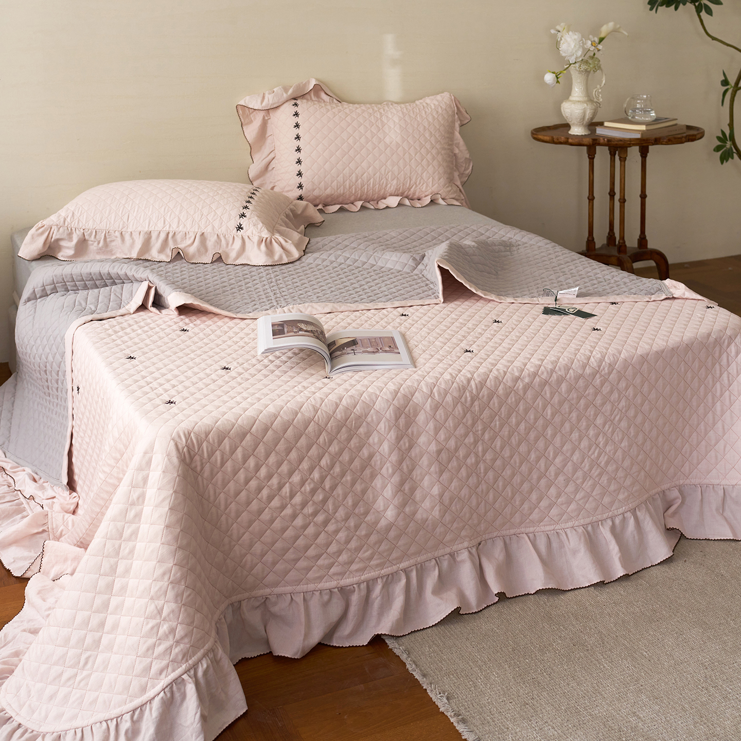 (总)上喜2025新款韩国全棉砂洗床盖系列,粉色,黄色,灰色,绿色,紫色