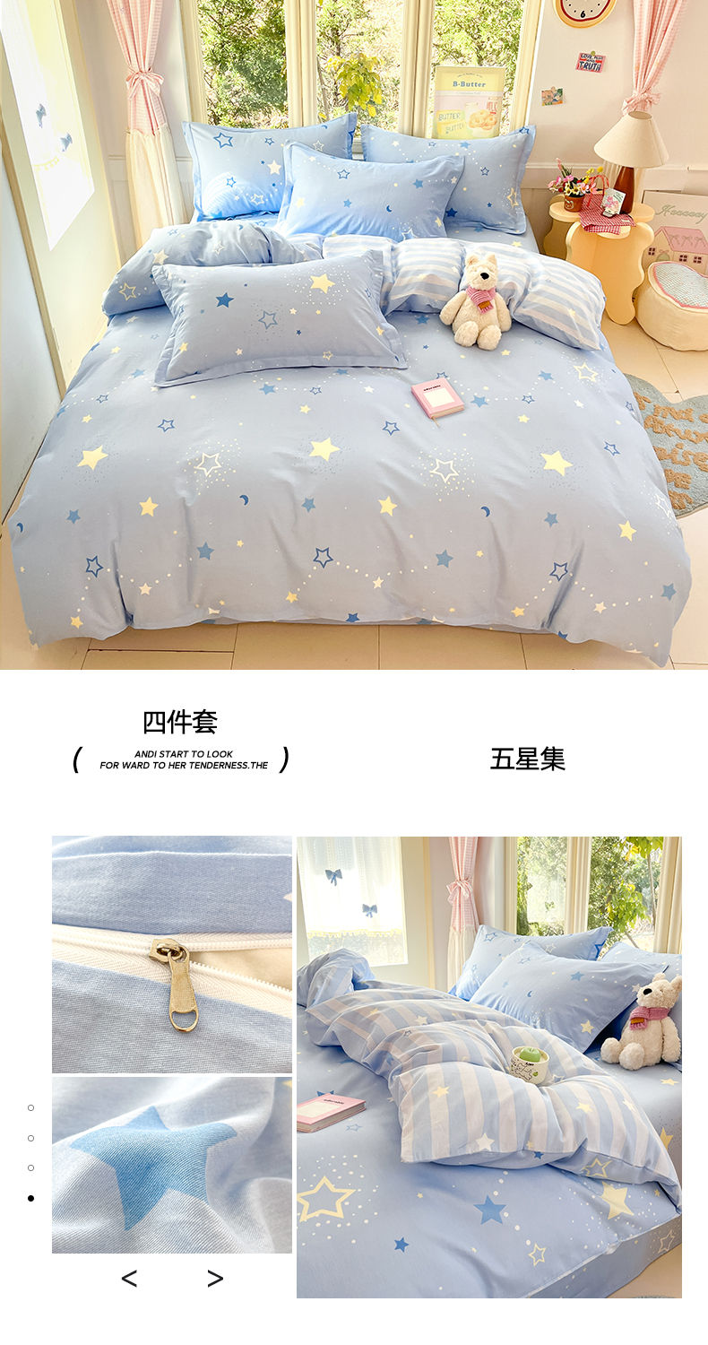当前位置: 91家纺网 > 商品网购 > 床品套件 > 四件套 > 全棉普通四件套 > 莱通家纺 2026春夏新款全棉12868印花四件套单品系列-四件套 星星仔的梦