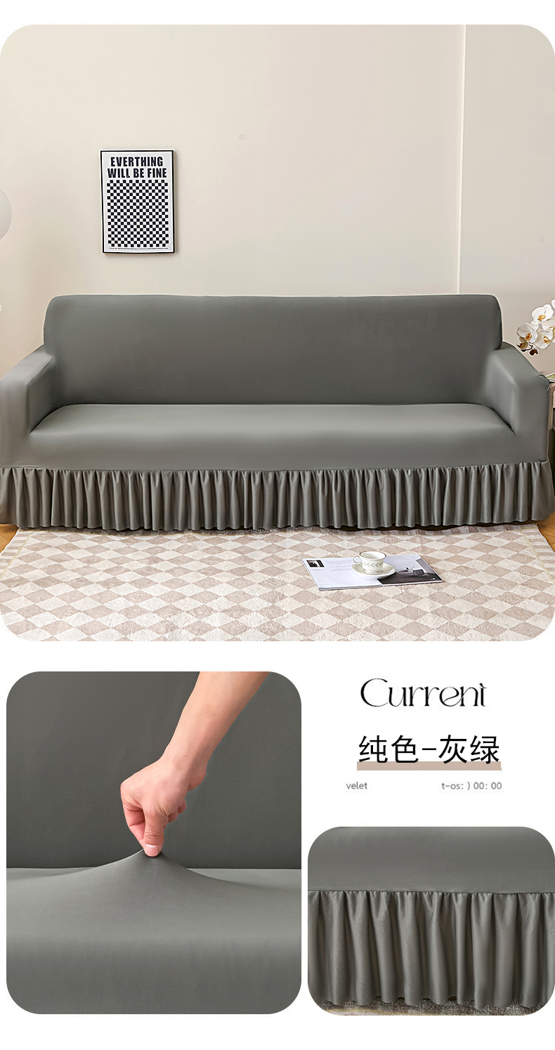 商品名称:(总)兴俪韵家纺 2025新款裙边款纯色双扶手提花绒沙发套