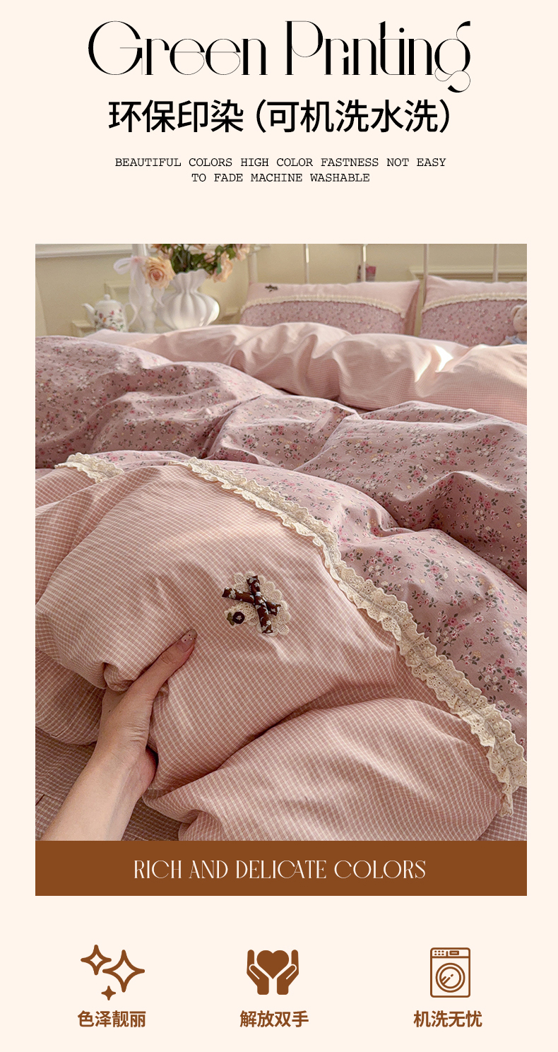 (总)安莱生活 2026年新品全棉纯棉小碎花刺绣花边款四件套-小碎花系列