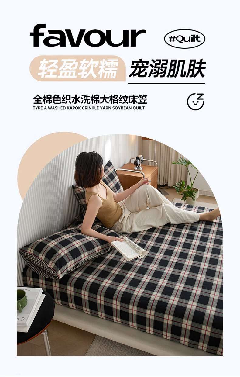 (总)启程家纺 2026新款纯棉水洗棉复古大格系列多规格纯棉床笠,摩登大黑,摩登大咖,摩登大绿,苏格兰藏蓝大格,苏格兰红大格,苏格兰黄大格,苏格兰蓝大格,组合