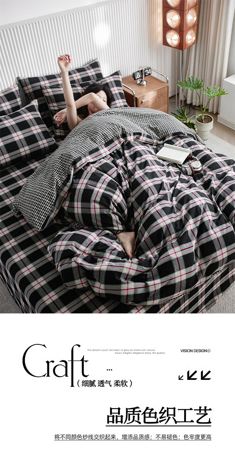 (总)启程家纺 2026新款纯棉水洗棉复古大格系列多规格纯棉四件套,摩登大黑,摩登大咖,摩登大绿,苏格兰藏蓝大格,苏格兰红大格,苏格兰黄大格,苏格兰蓝大格