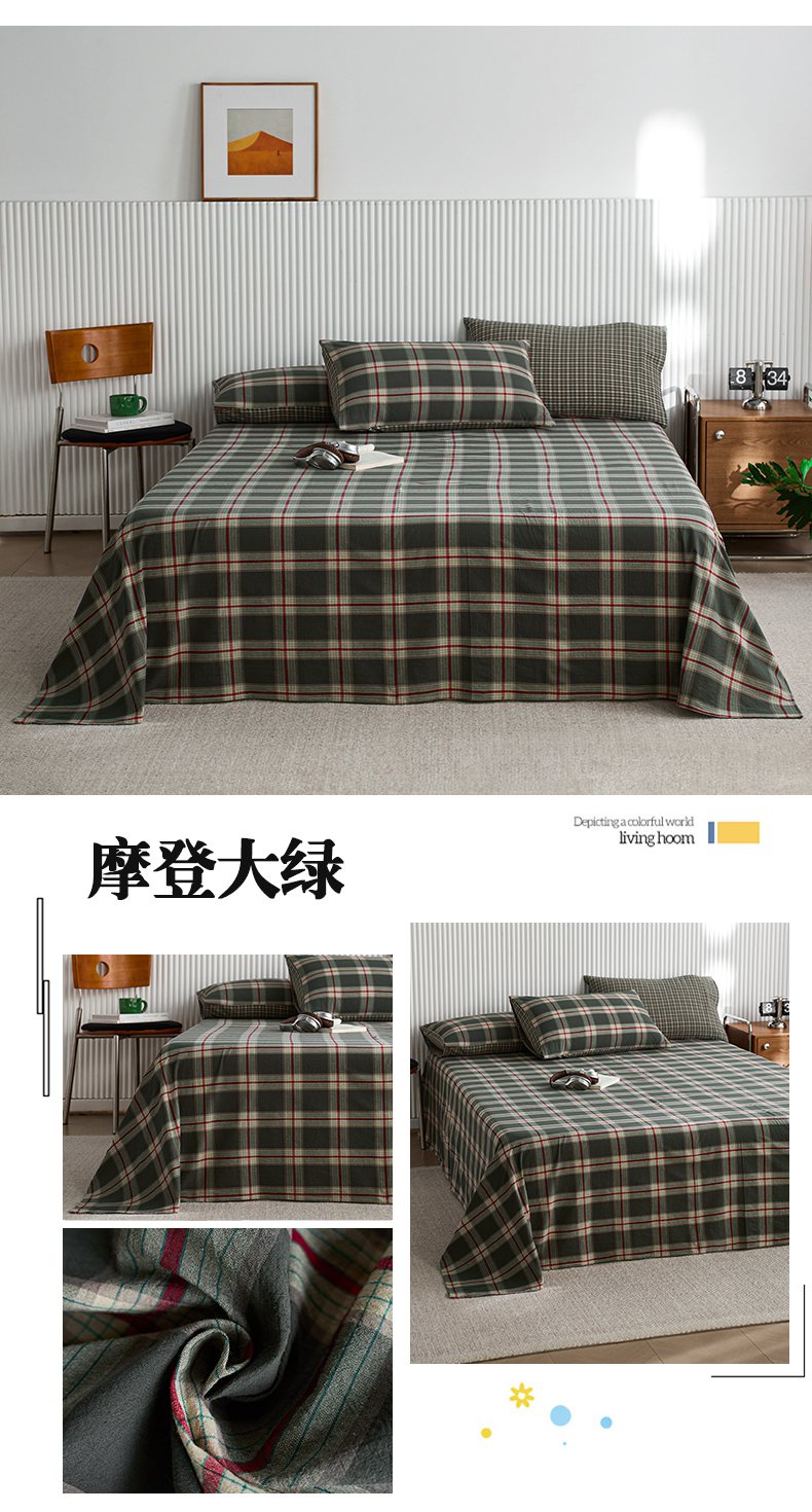 (总)启程家纺 2026新款纯棉水洗棉复古大格系列多规格纯棉床单,摩登大黑,摩登大咖,摩登大绿,苏格兰藏蓝大格,苏格兰红大格,苏格兰黄大格,苏格兰蓝大格