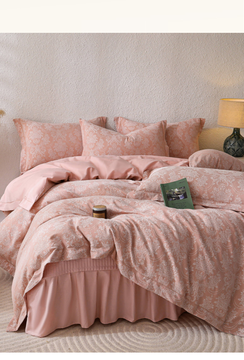 (总)金艾草 2024新款水洗全棉浮雕提花床盖四件套,圣罗纳-灰,片叶情-豆绿,罗曼-浅绿,蜀锦-茉莉白,轻颜-珊瑚粉