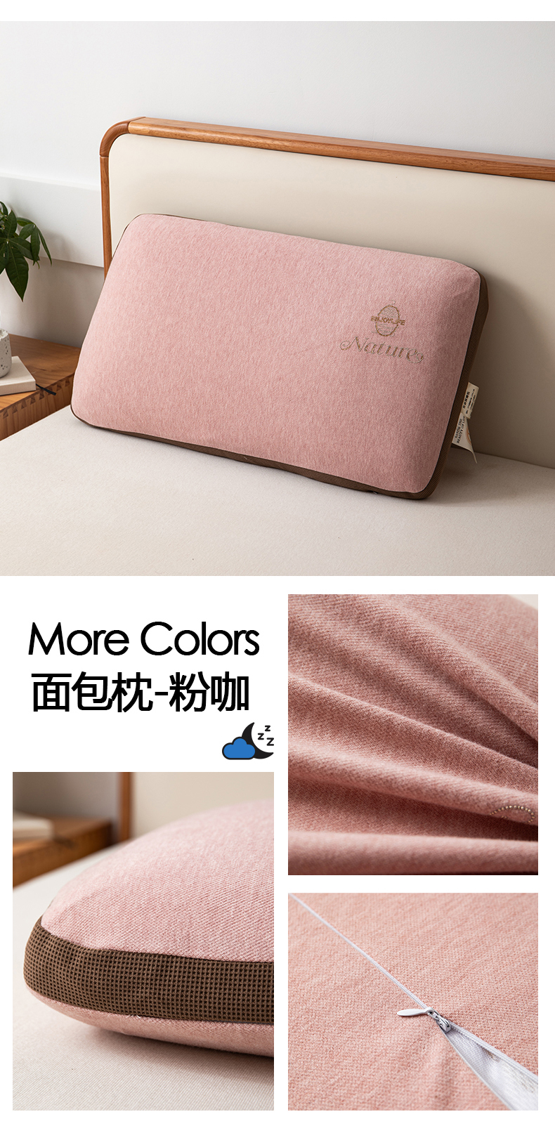 (总)一粒麦子乳胶馆 2026新款高弹亲肤加厚面包款生物基无压感枕头枕芯,粉咖色,咖粉色,组合图