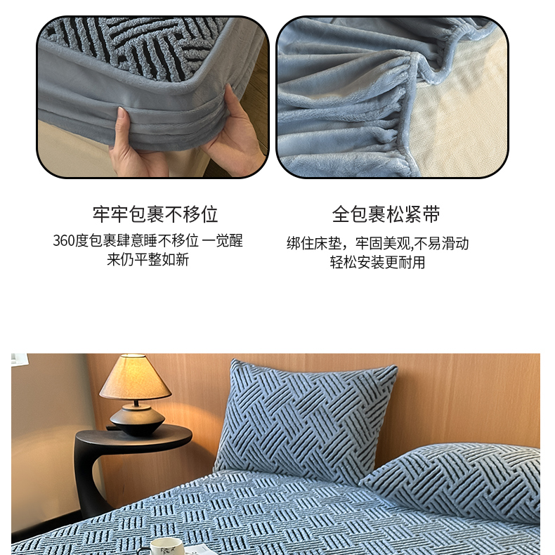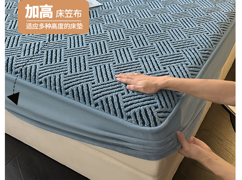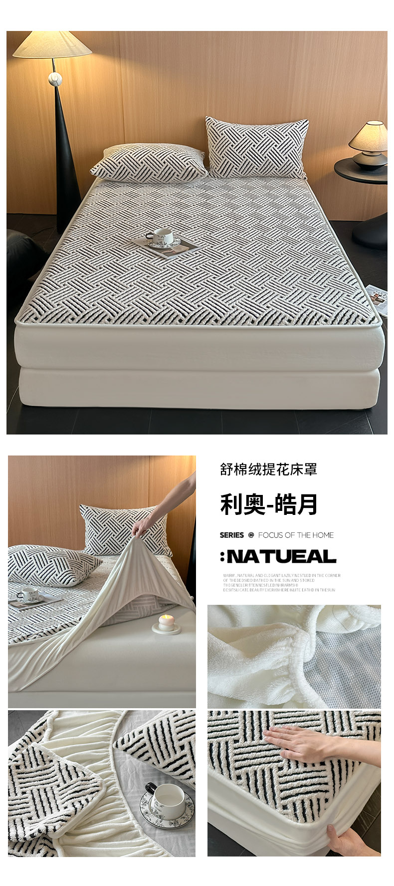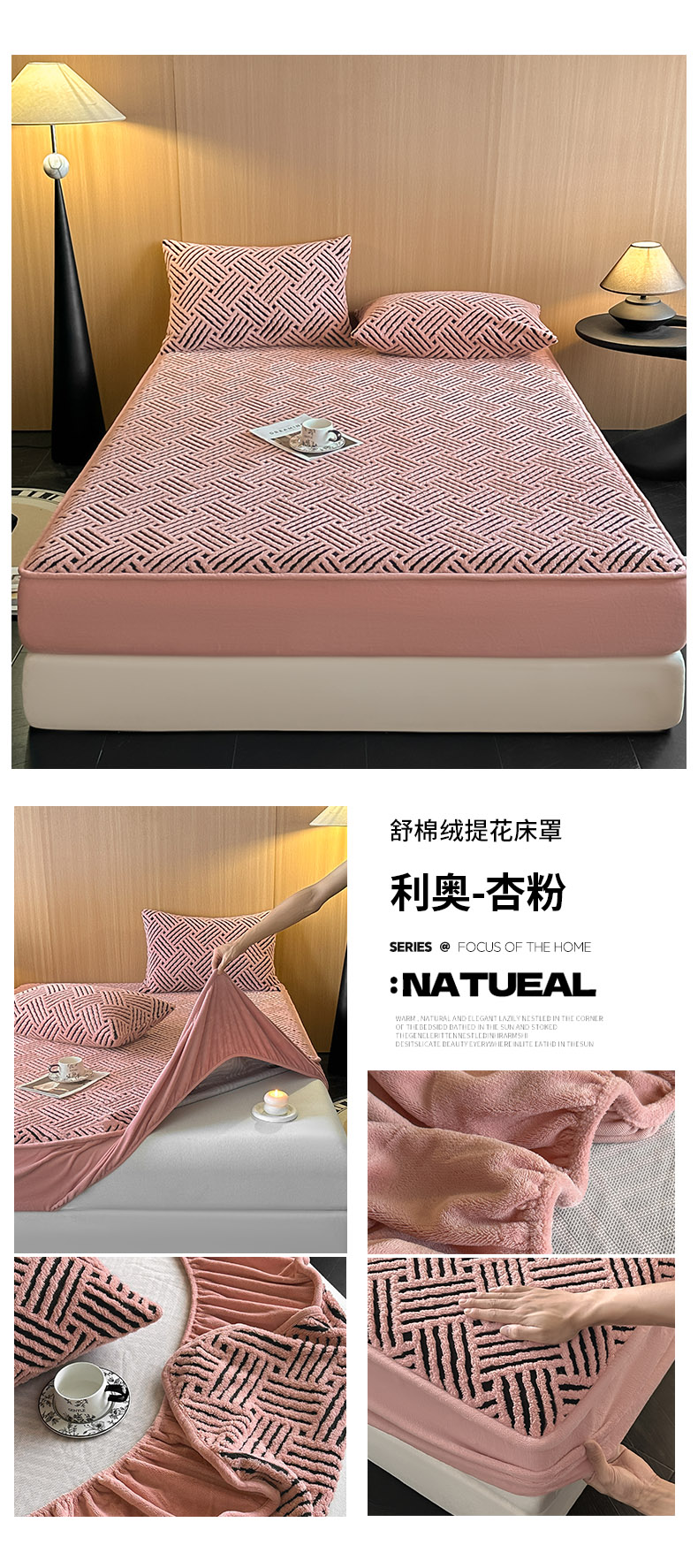 (总)可恩欣 2026新款舒棉绒提花防水床笠-利奥,利奥-皓月,利奥-杏粉,利奥-玄灰,利奥-远蓝,利奥-云咖