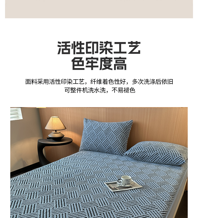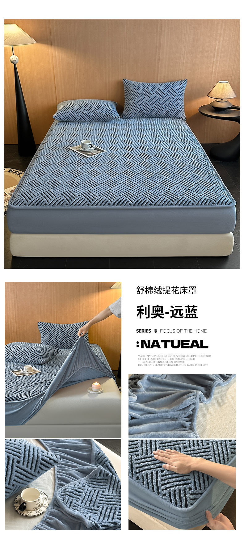 商品名称:可恩欣 2026新款舒棉绒提花防水床笠-利奥 利奥-远蓝