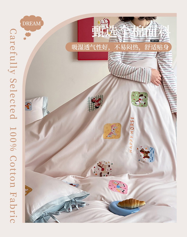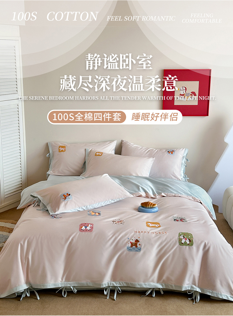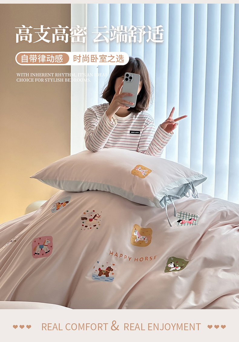 当前位置: 91家纺网 > 商品网购 > 床品套件 > 四件套 > 全棉普通四件套 > 爱缦 2026新款小马奔腾系列100s全棉四件套(此款券后控价:小号238,标准298,大号318) 小马奔腾-浅粉蓝