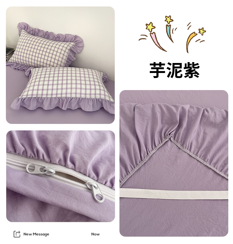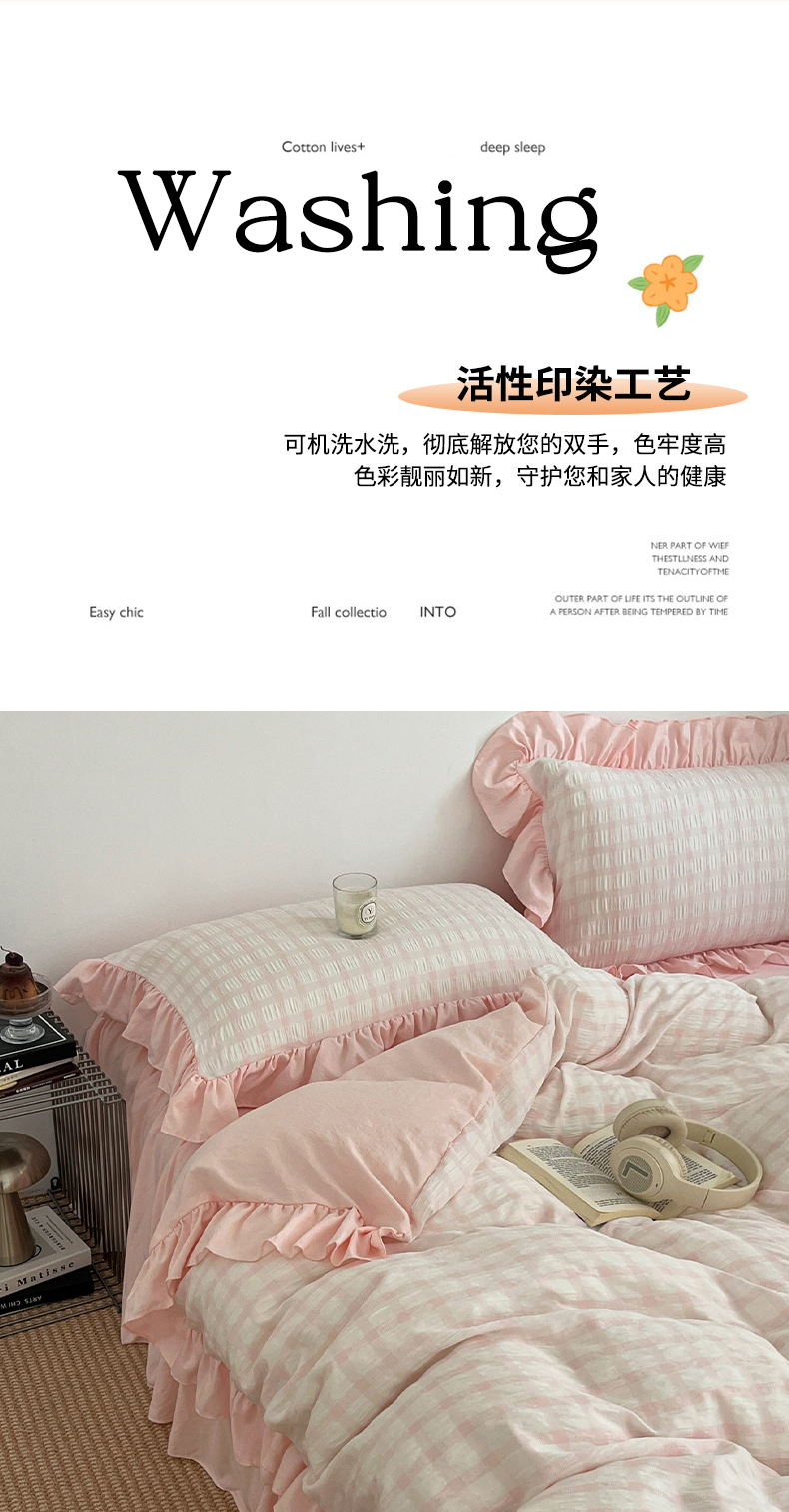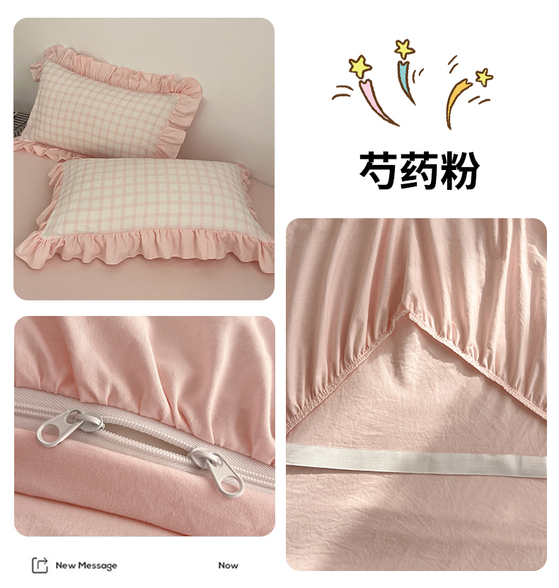 乐卧家居 2026新款韩系千禧梦核复古回潮少女感格纹褶皱款荷叶边四件套 千禧-芍药粉