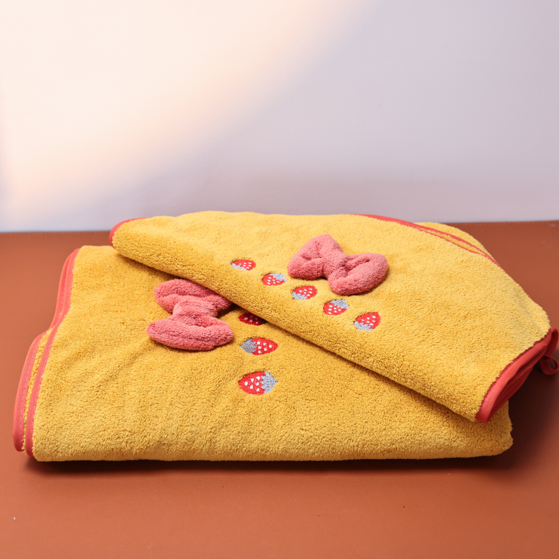 浴巾毛巾两件套-草莓蝴蝶黄