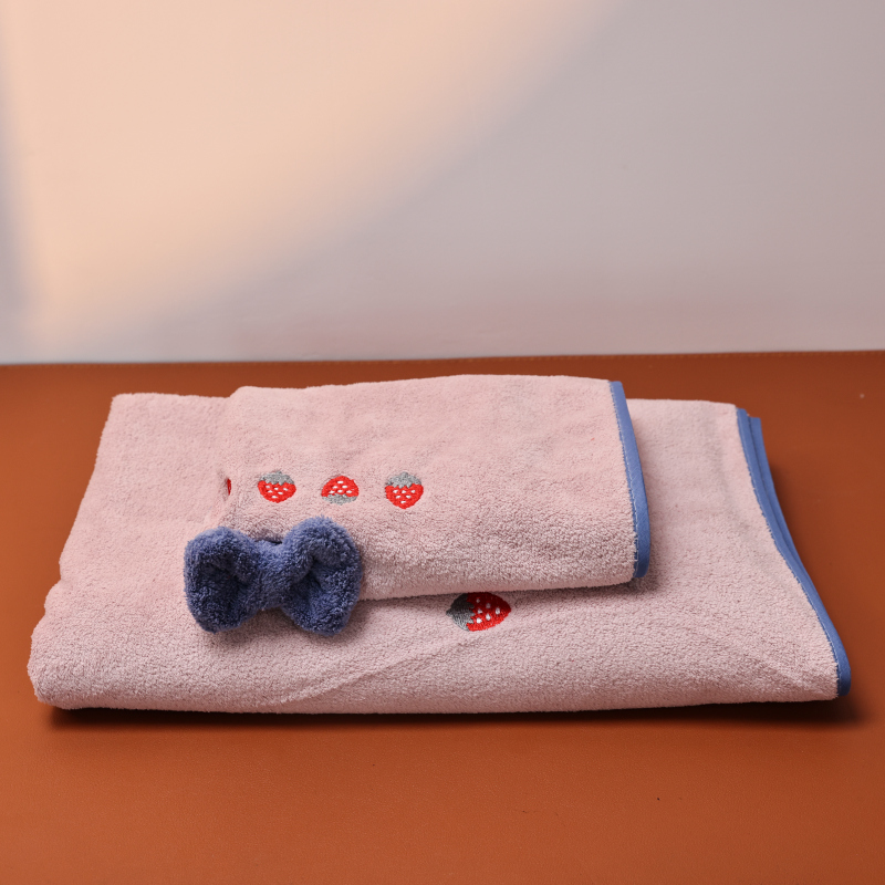 浴巾毛巾两件套-草莓蝴蝶紫