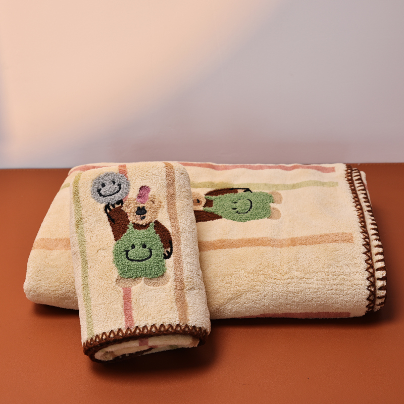 浴巾毛巾两件套-笑脸熊-米