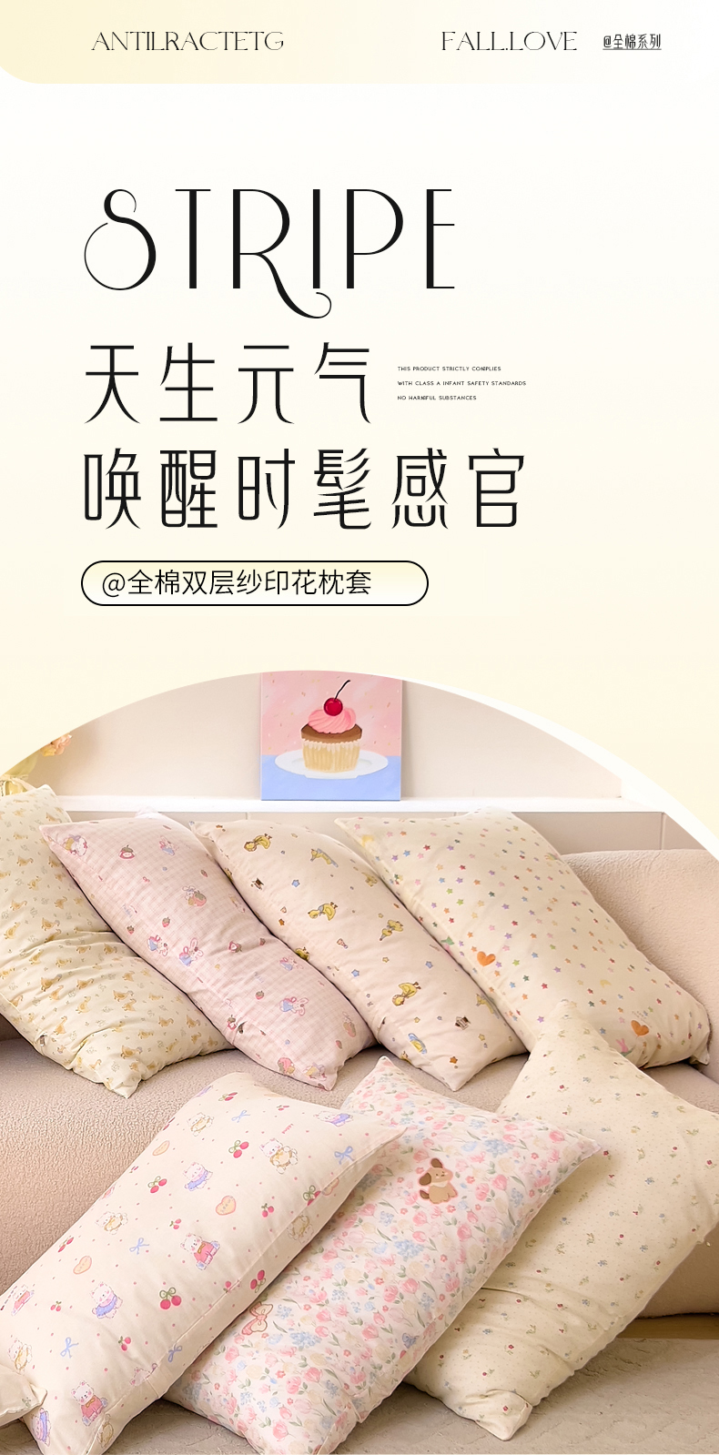 (总)DoDo 兜兜 2026新款全棉纯棉小温暖双层纱系列单枕套【可定做尺寸】