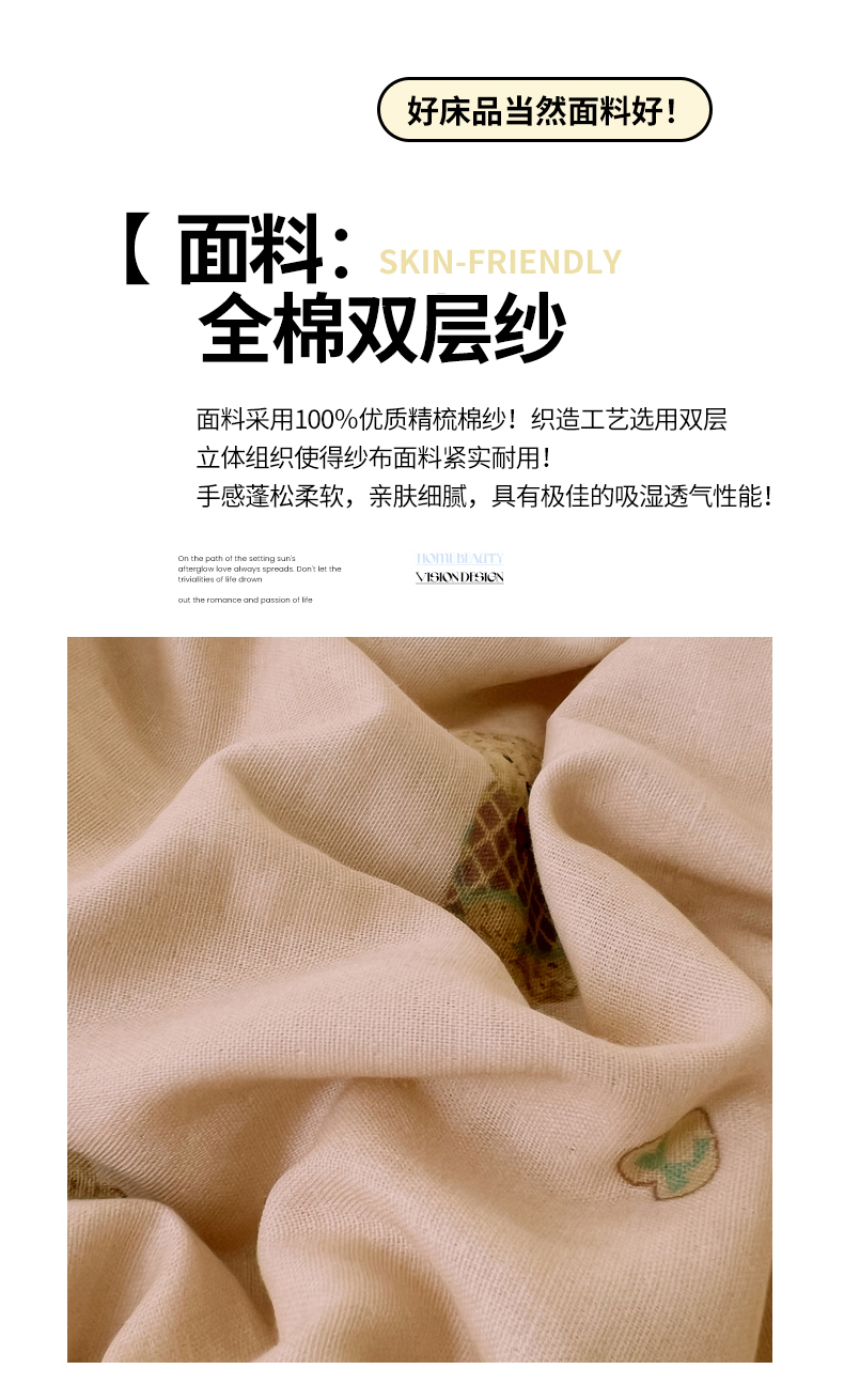 (总)DoDo 兜兜 2026新款全棉纯棉柔软双层纱套件系列(可定做尺寸),含笑-粉,爱洛伊,安妮,格桑花-粉,格桑花-黄,含笑-紫,美娜,木兮,浅茉,乔安娜,软芙,甜梦,香草,伊卡,芷若