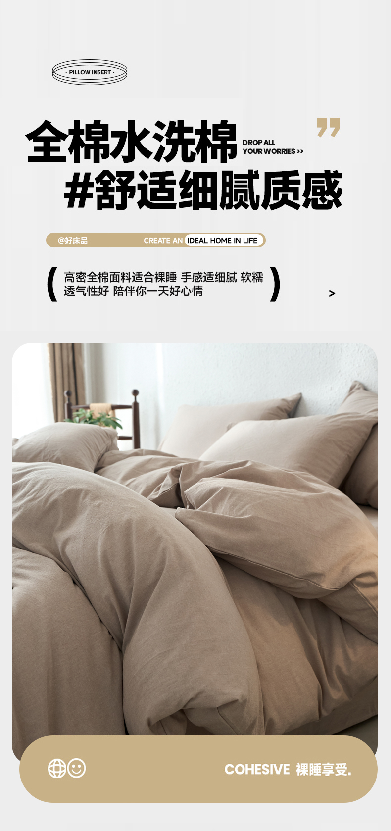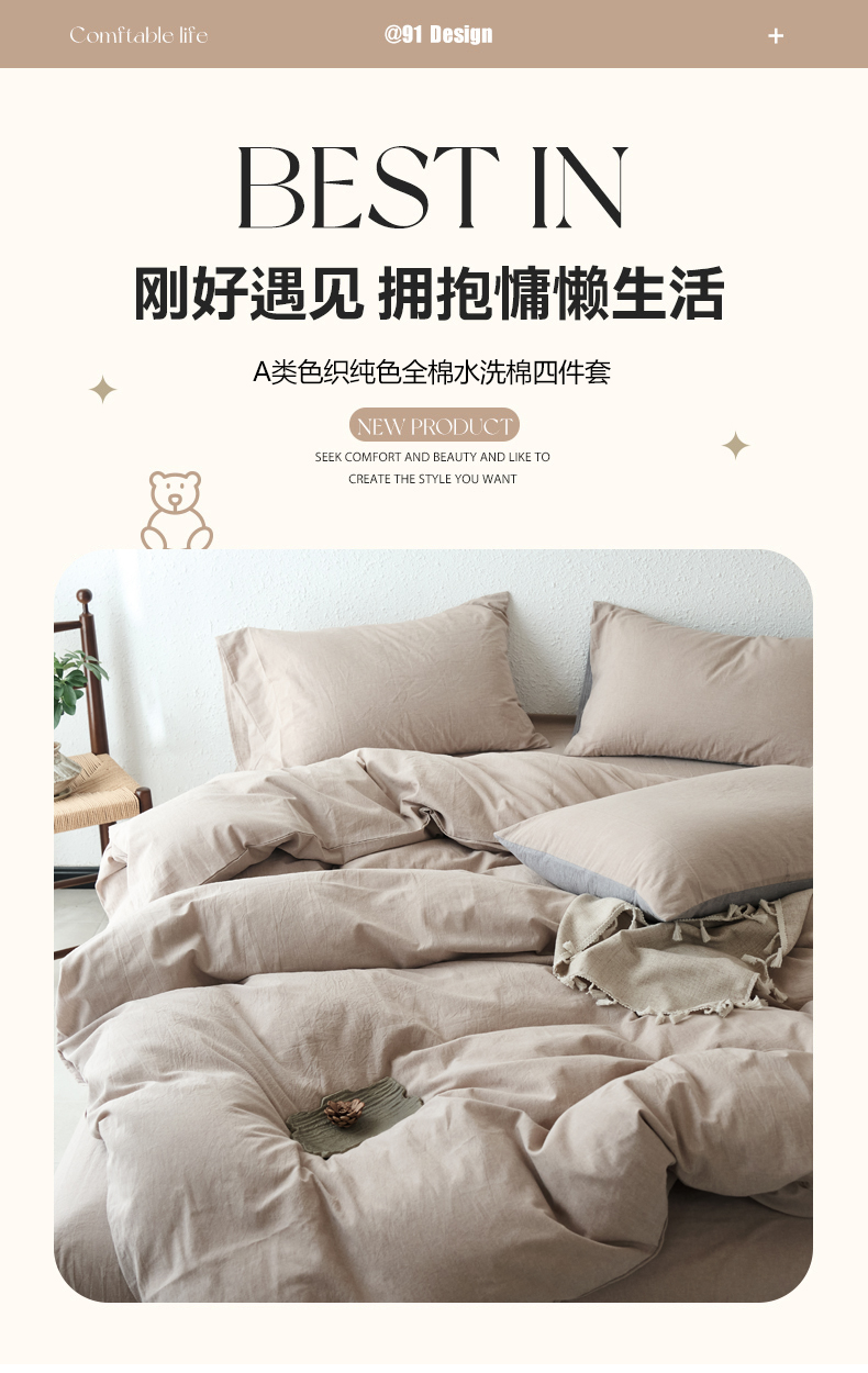 当前位置: 91家纺网 > 商品网购 > 床品套件 > 四件套 > 全棉普通四件套 > 兰紫橙家纺 2026新款A类色织纯色全棉水洗棉四件套 全棉水洗棉-卡其
