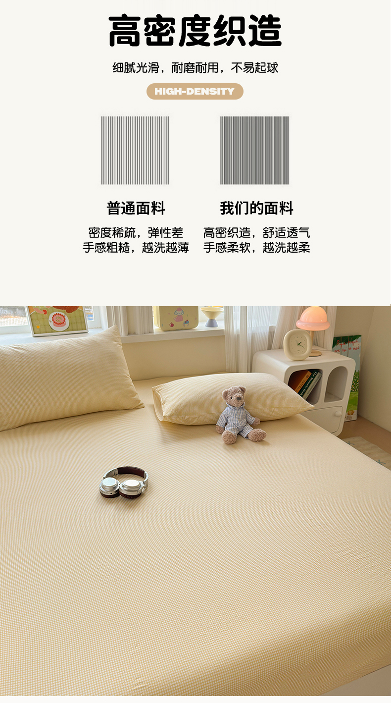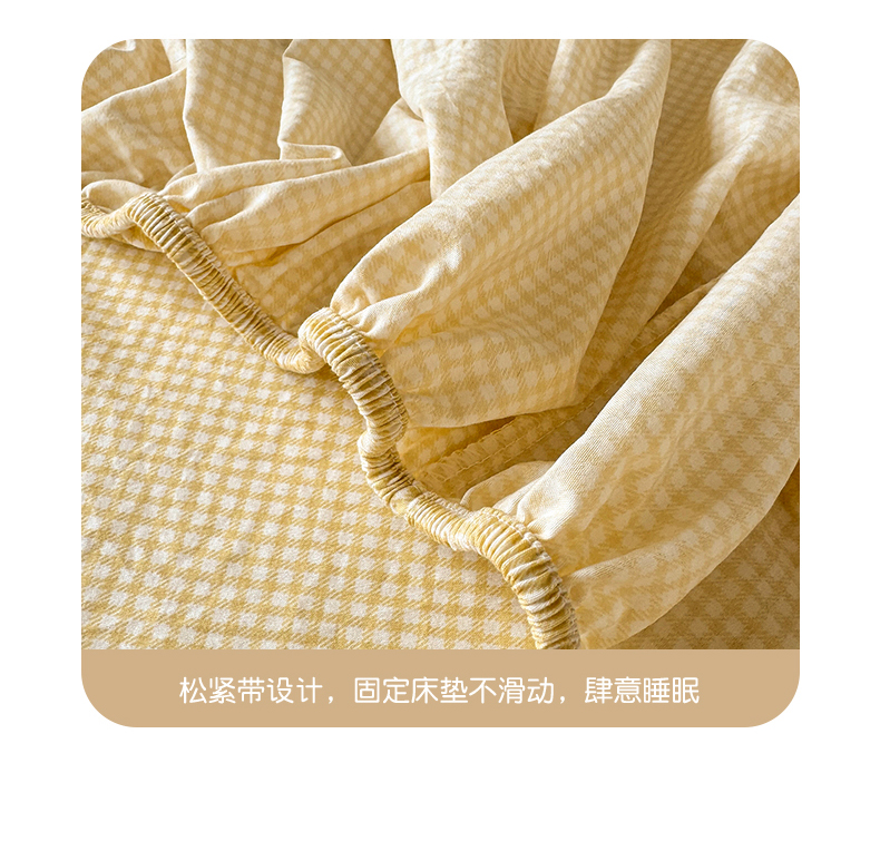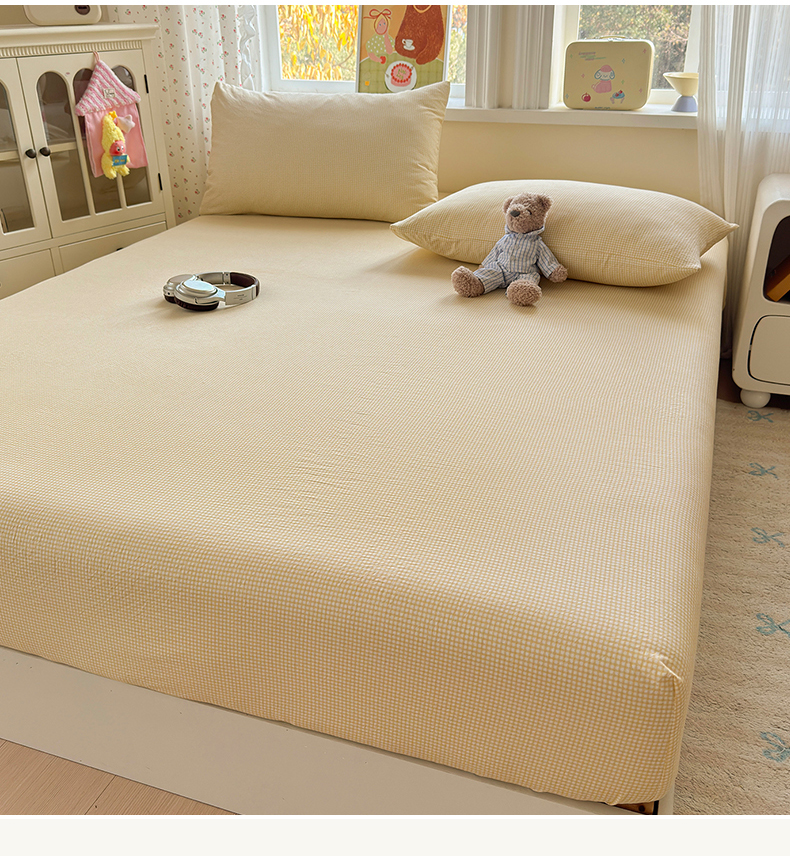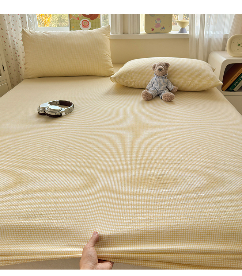 • 91家纺网 家纺一手货源 找家纺 沐芷 2026 【提供买家秀】古法水洗仿棉床笠席梦思床罩床垫防滑床套罩床笠三件套 迷你格-黄
