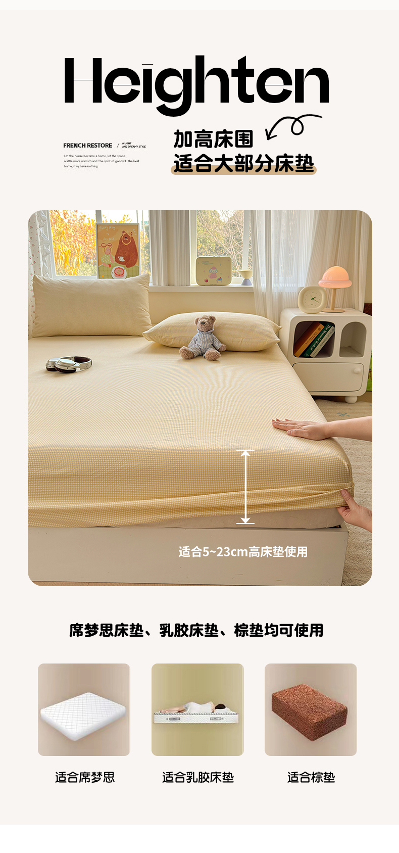 当前位置: 91家纺网 > 商品网购 > 床上用品 > 床笠 > 沐芷 2026 【提供买家秀】古法水洗仿棉床笠席梦思床罩床垫防滑床套罩床笠三件套 迷你格-黄