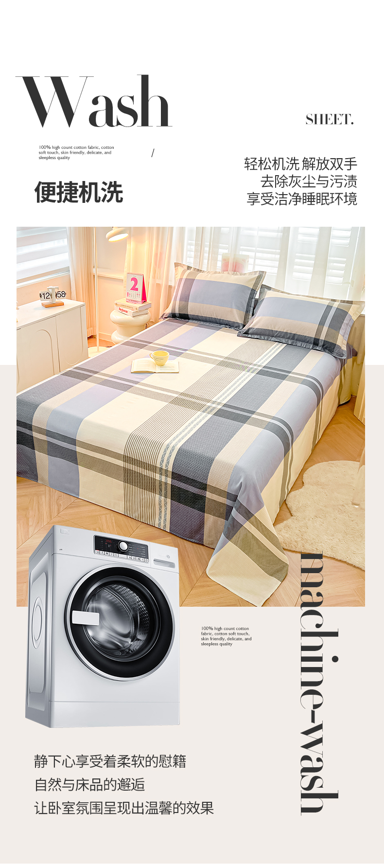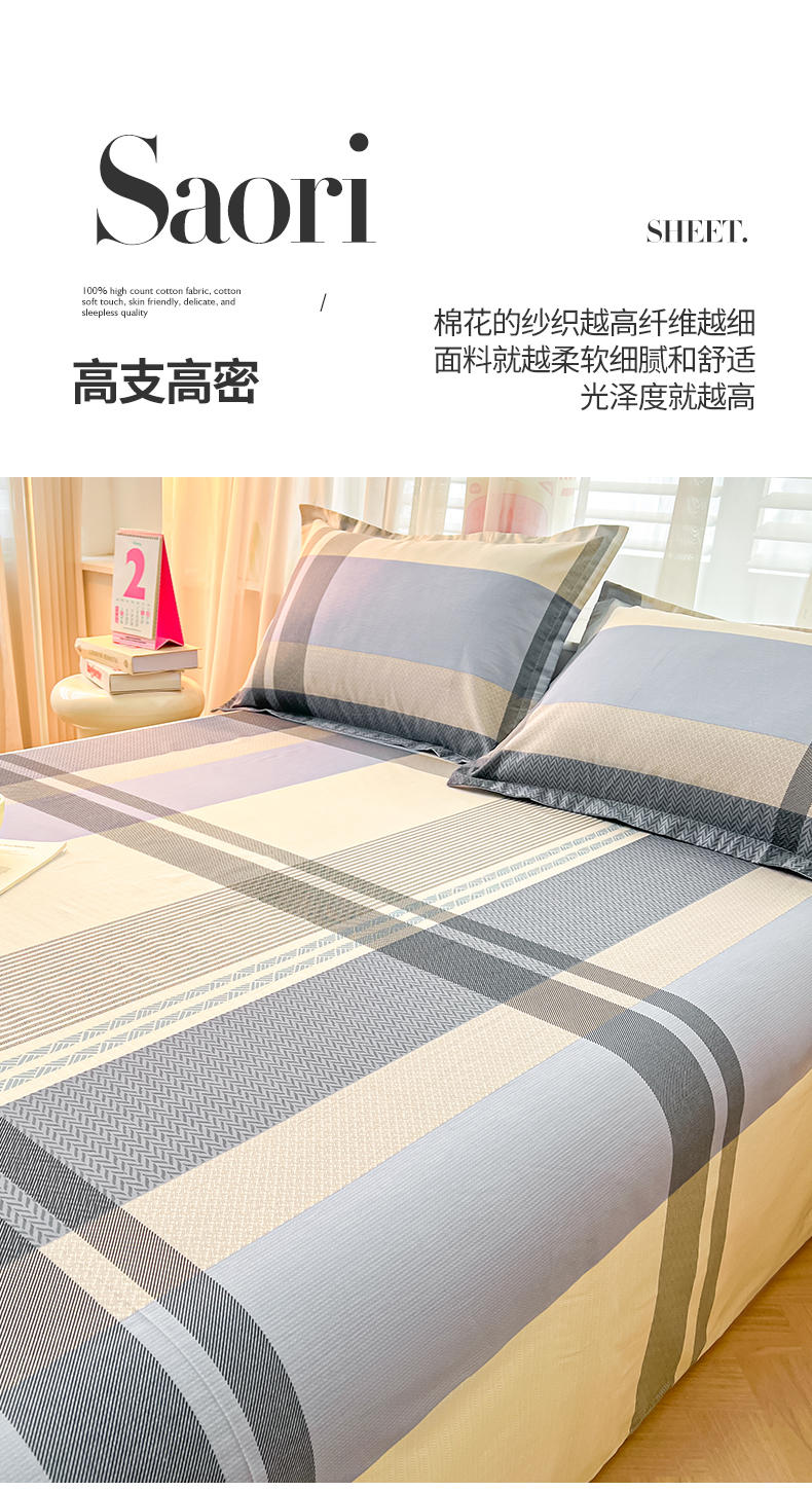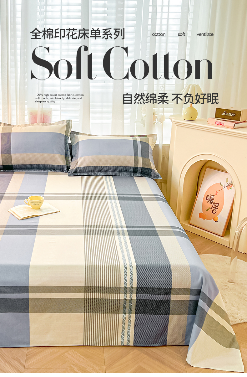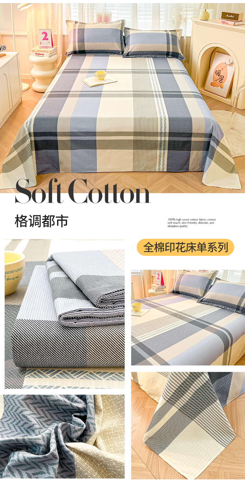 珂博家纺 2026新款12868全棉纯棉小清新印花系列单床单床笠 格调都市