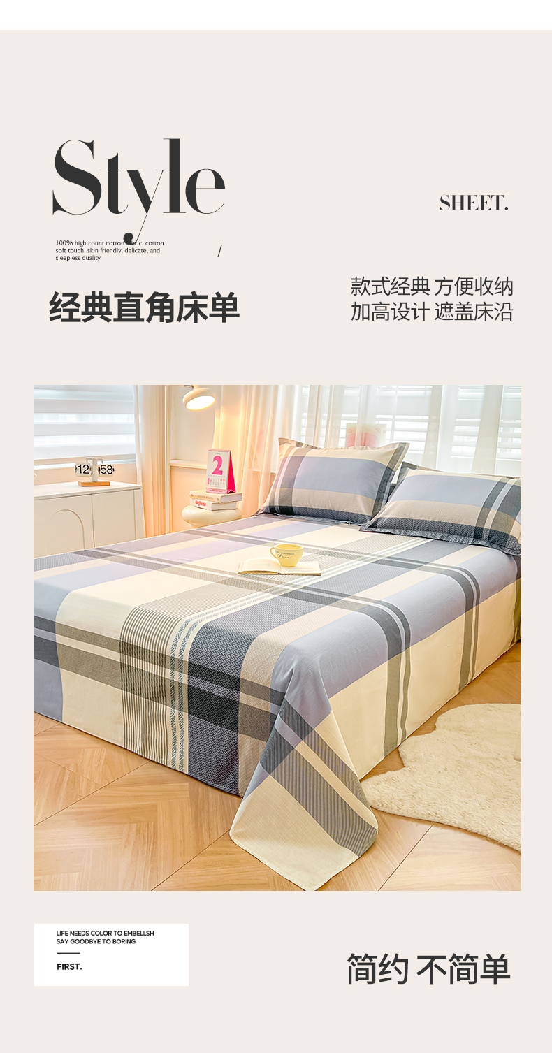 商品名称:珂博家纺 2026新款12868全棉纯棉小清新印花系列单床单床笠 格调都市