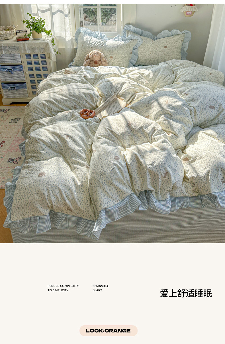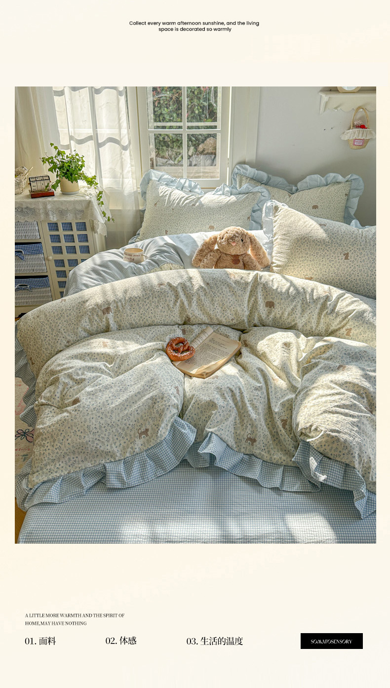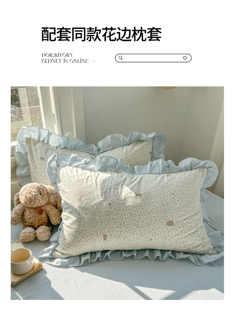 柒月家居 2026新款韩系仿棉小格花边四件套 萌物