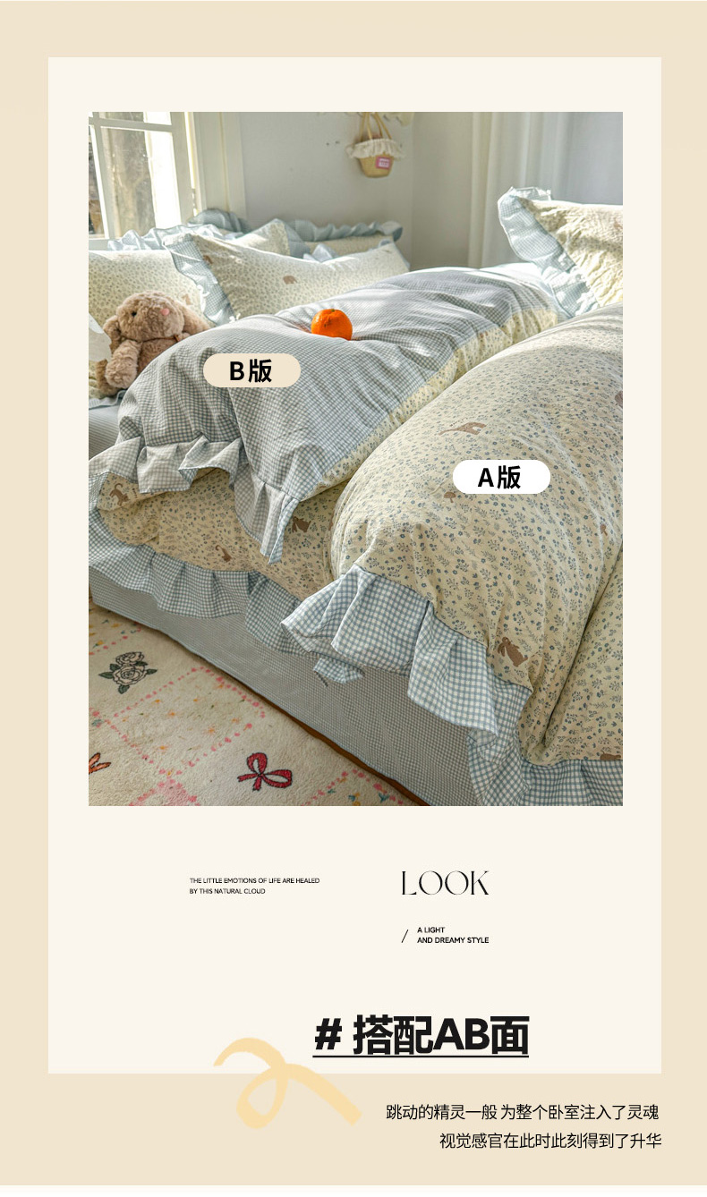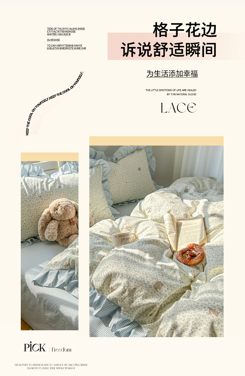 (总)柒月家居 2026新款韩系仿棉小格花边四件套,莓果,萌物,七分甜,甜桔,甜心狗,微笑,午后时光,线条猫,小柠檬,心愿狗,星星格,叶初开