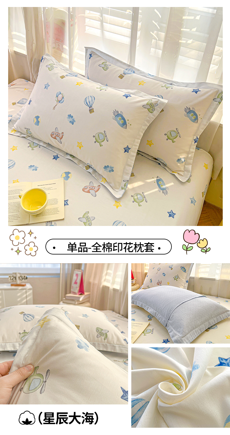 商品名称:珂博家纺 2026新款12868全棉纯棉小清新印花系列枕套单件单枕套 星辰大海