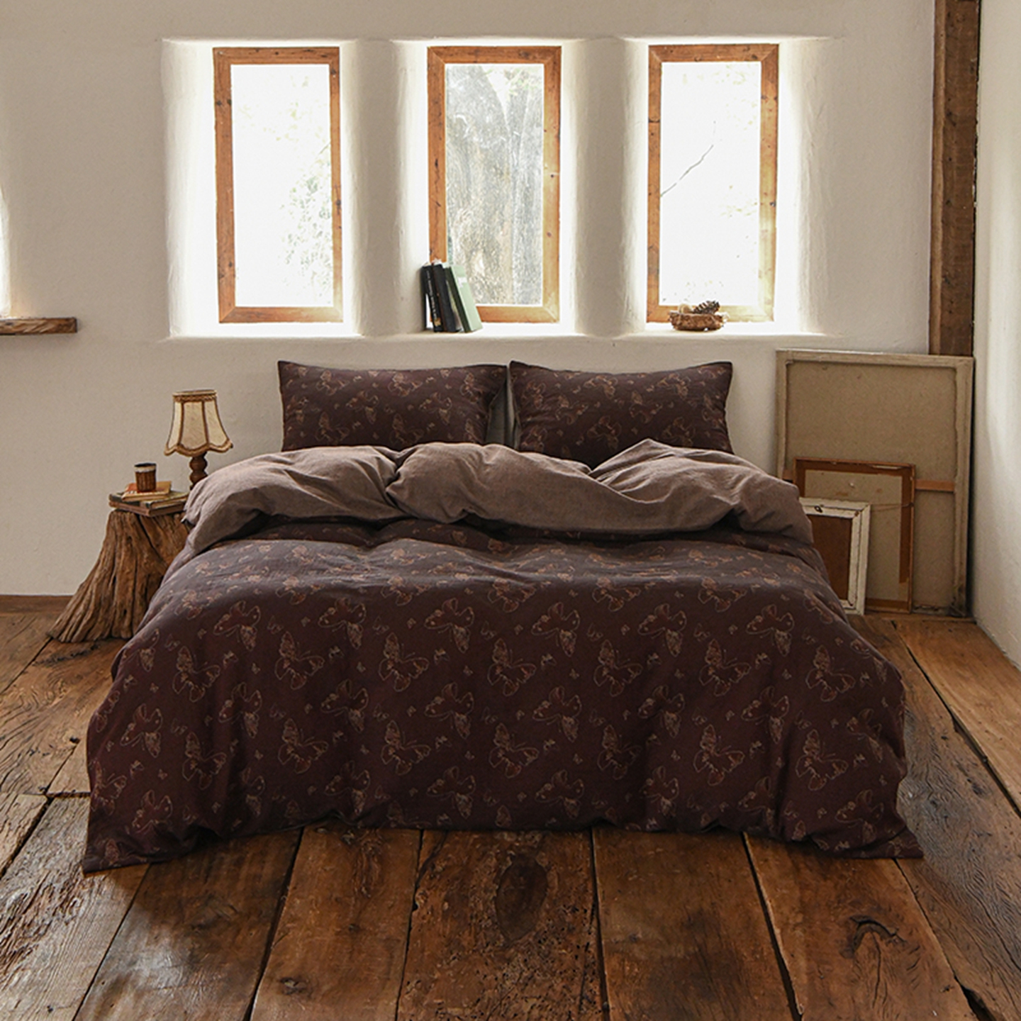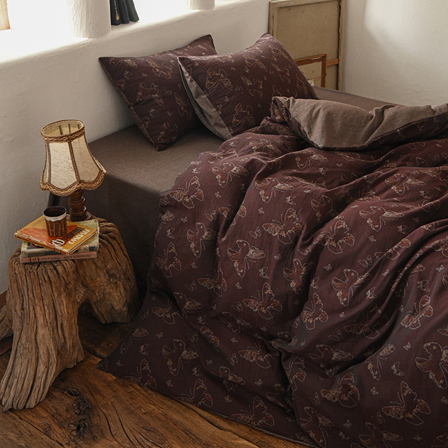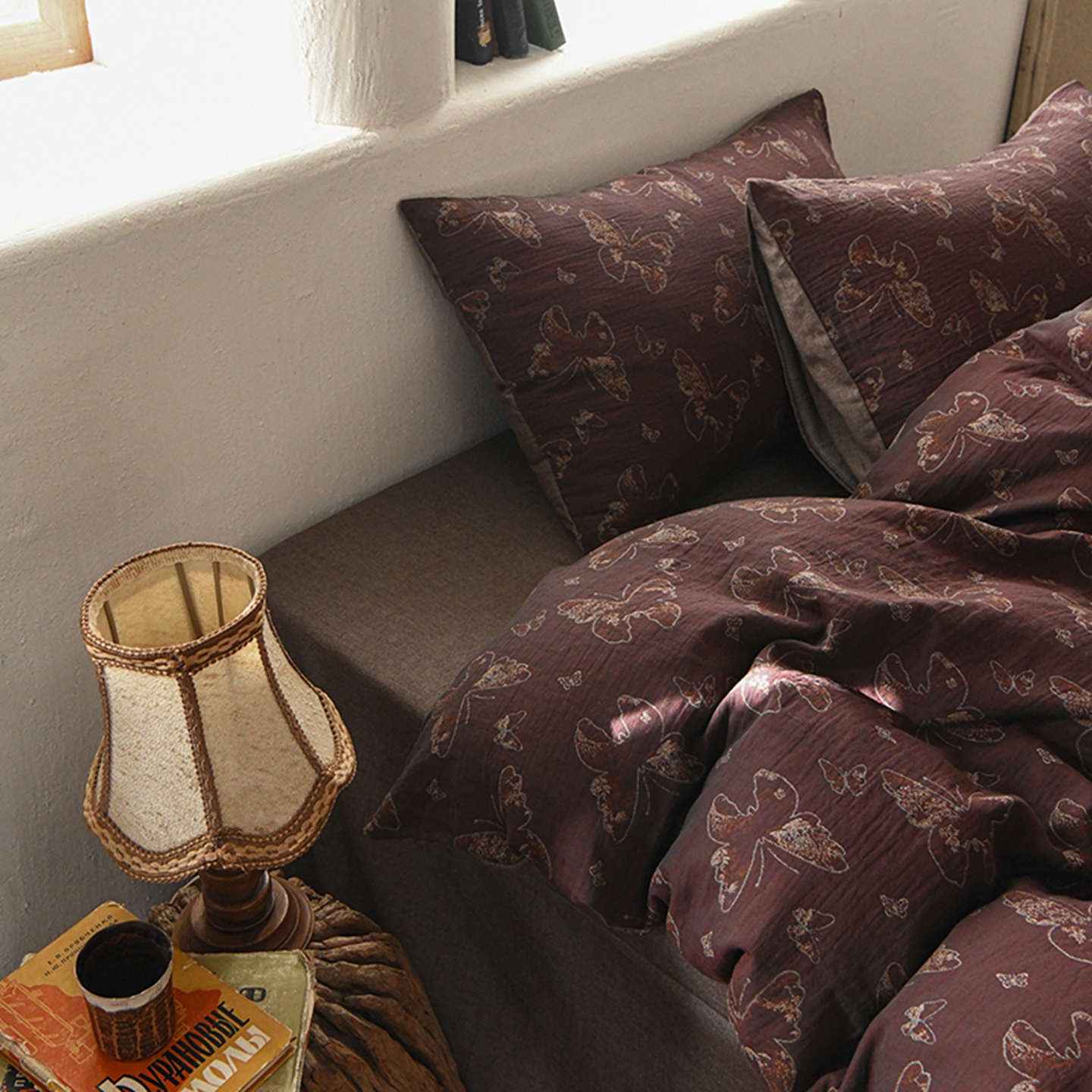(总)松色家居 2026新款棉麻水洗色织四件套系列-蝶影幽栖-咖