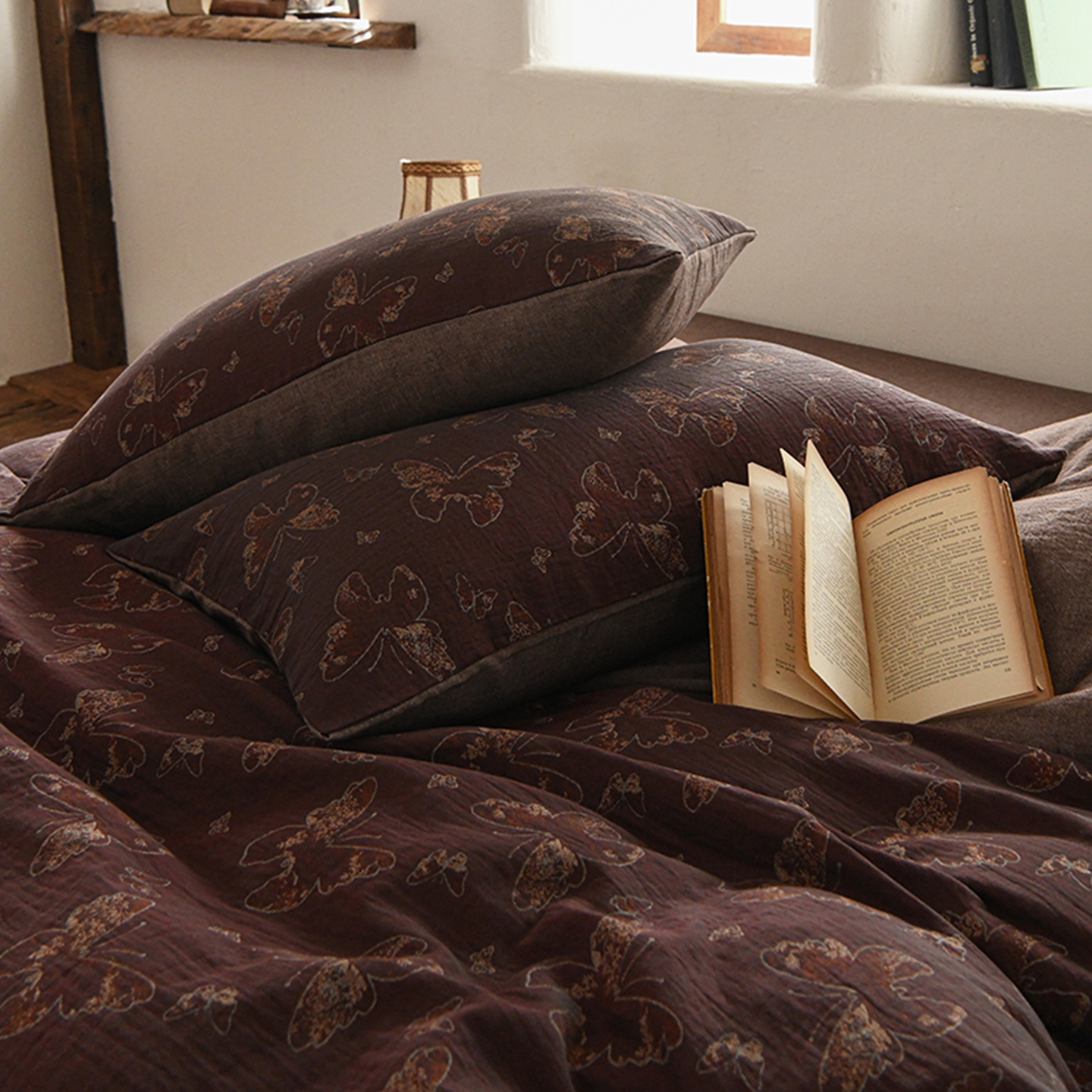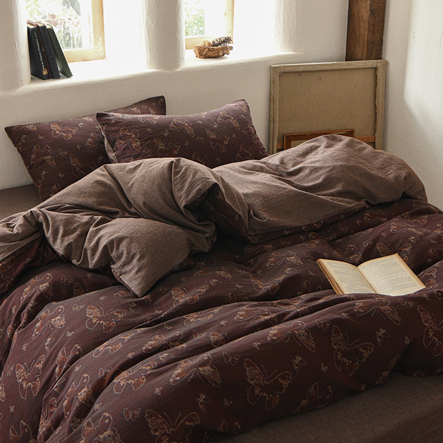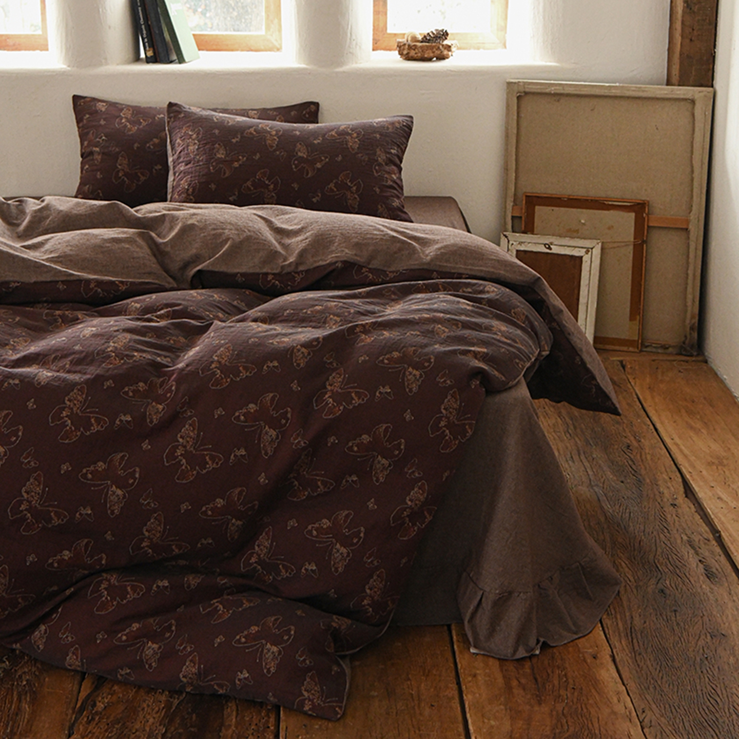 (总)松色家居 2026新款棉麻水洗色织四件套系列-蝶影幽栖-咖