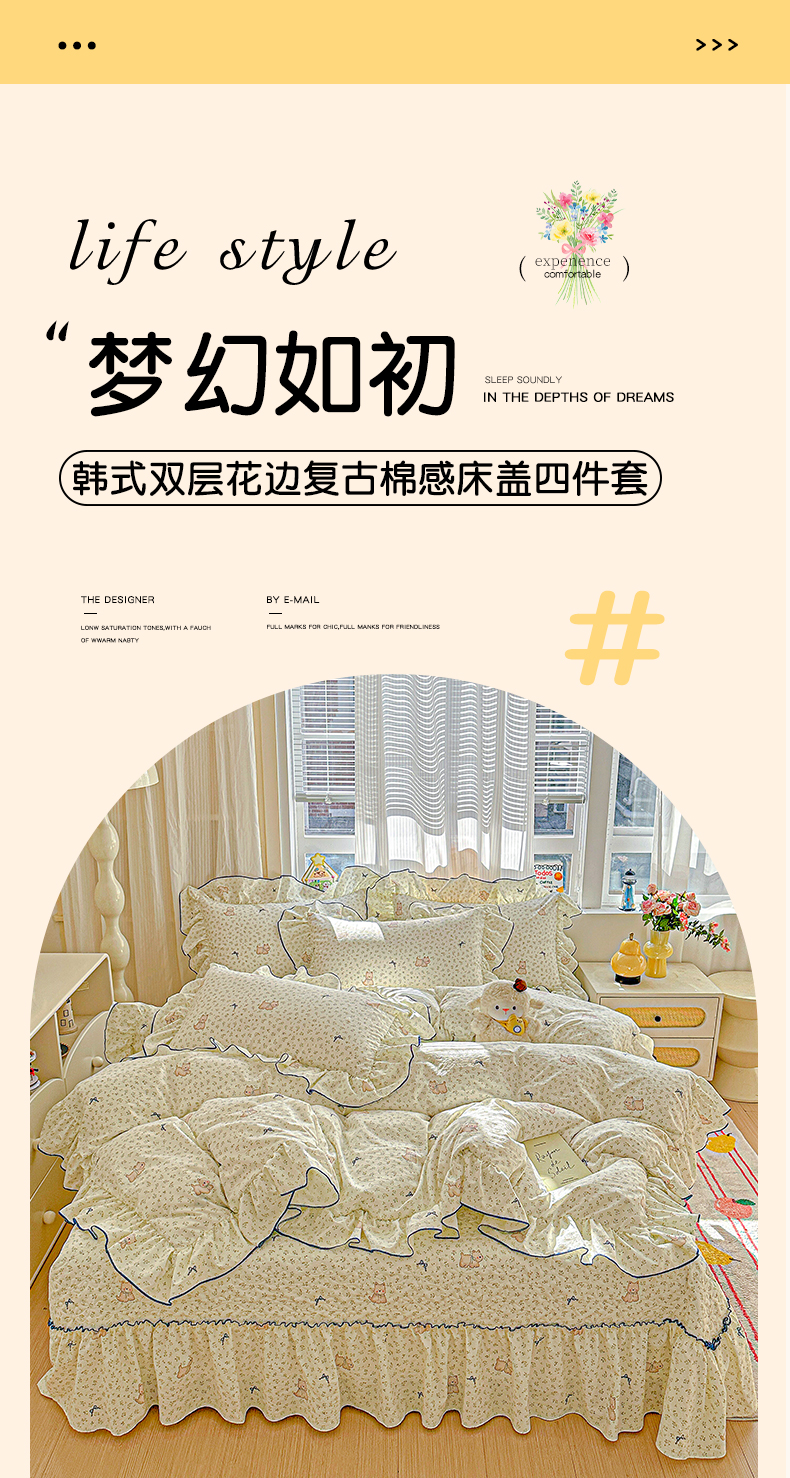 商品名称:(总)家维家纺 2026新款(常年不断货)韩式花边复古棉感床盖四件套 提供买家秀