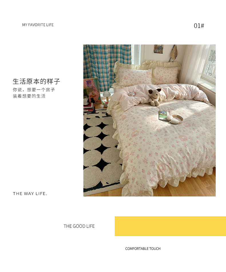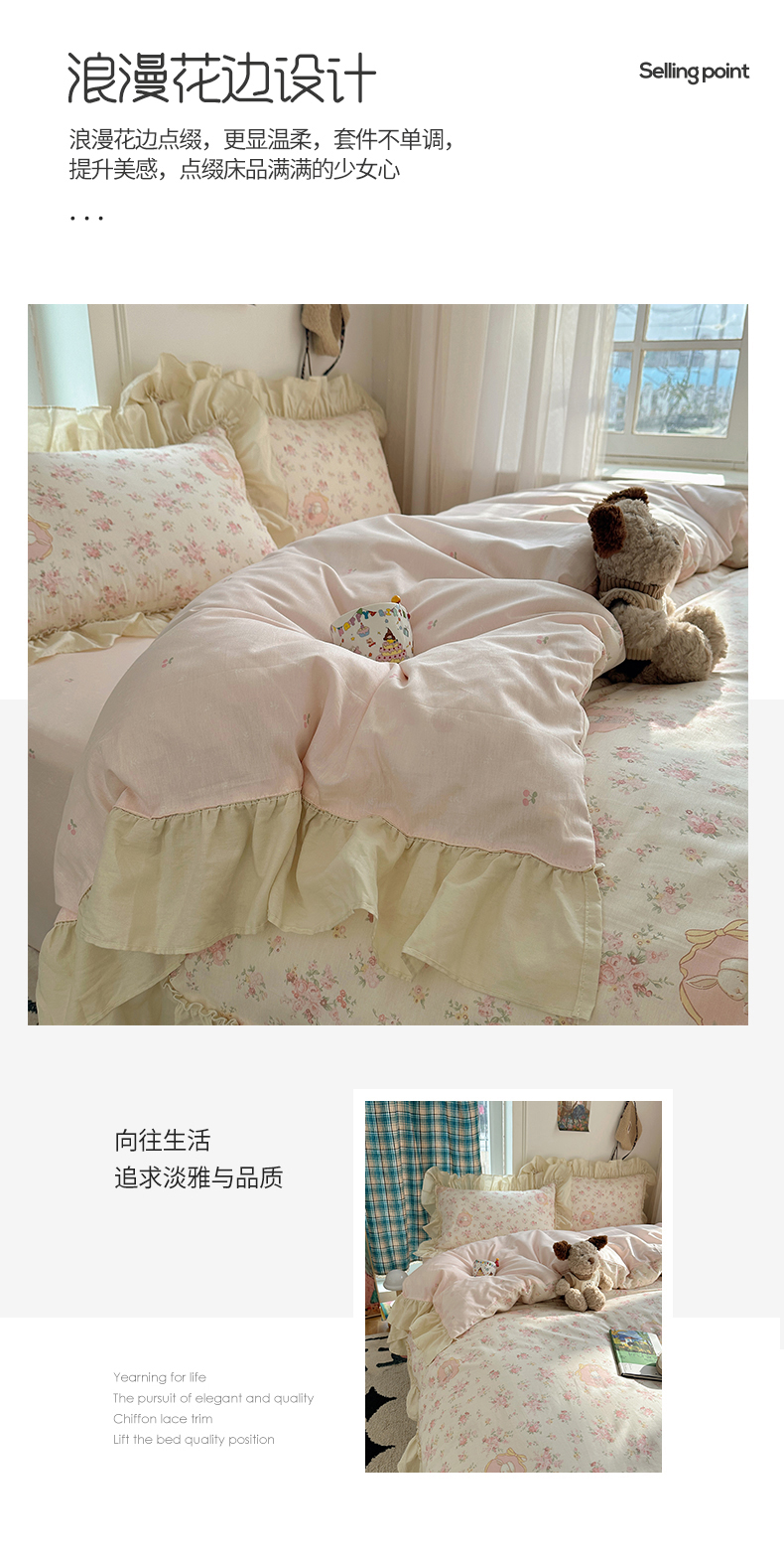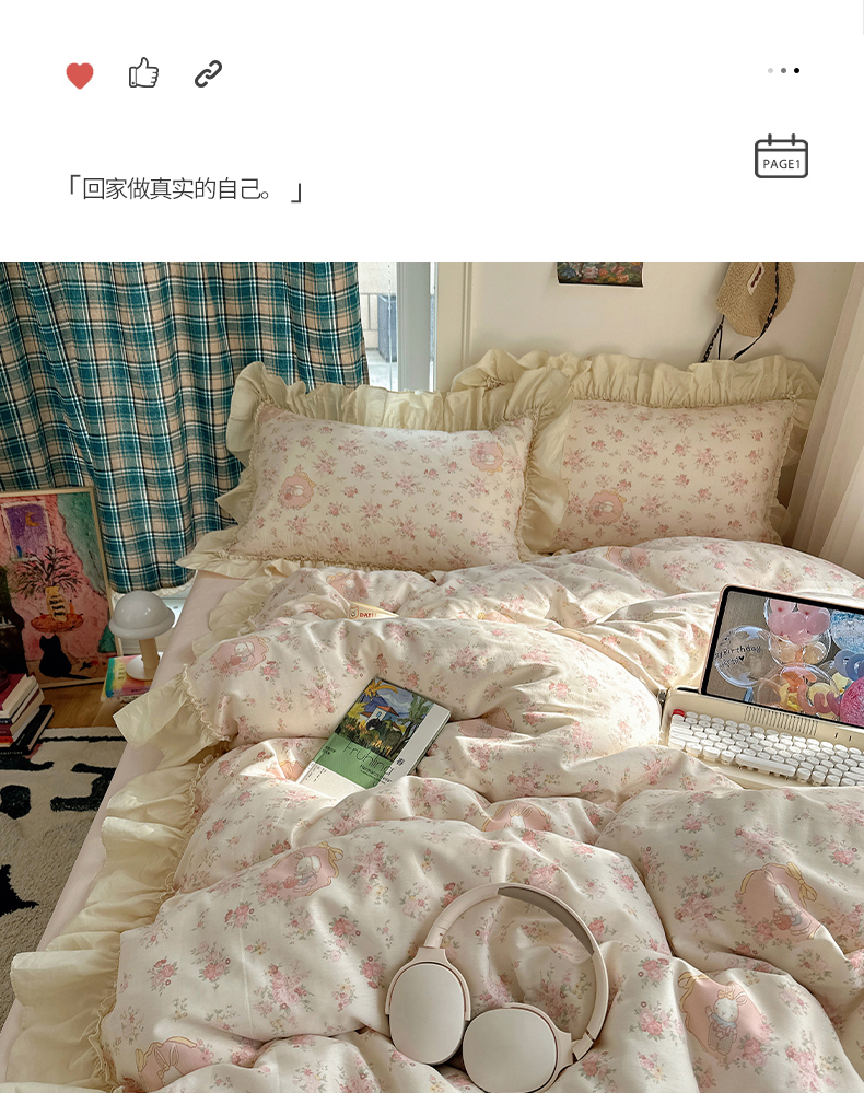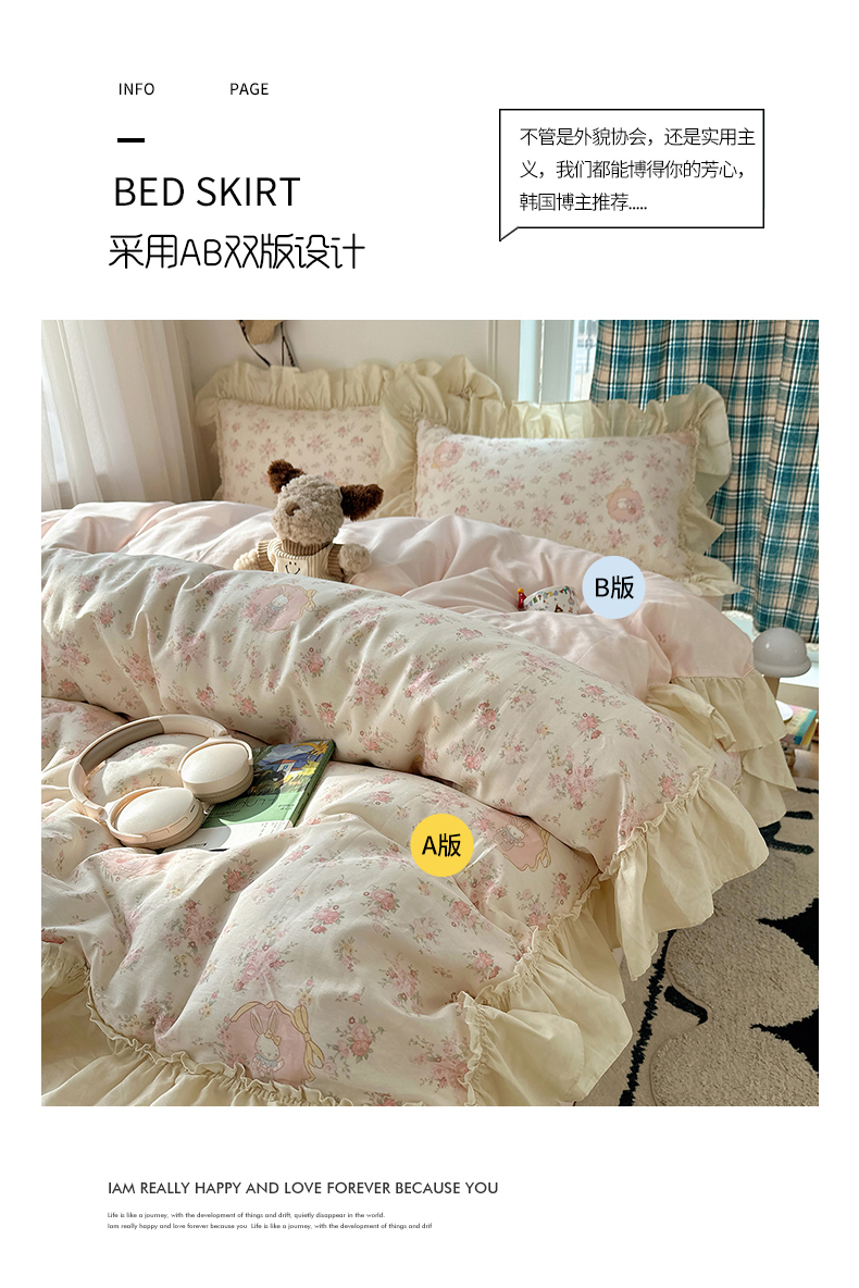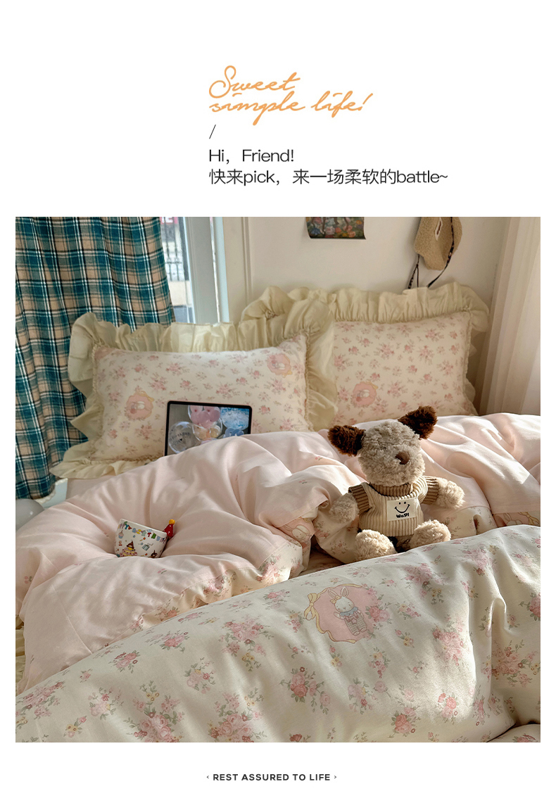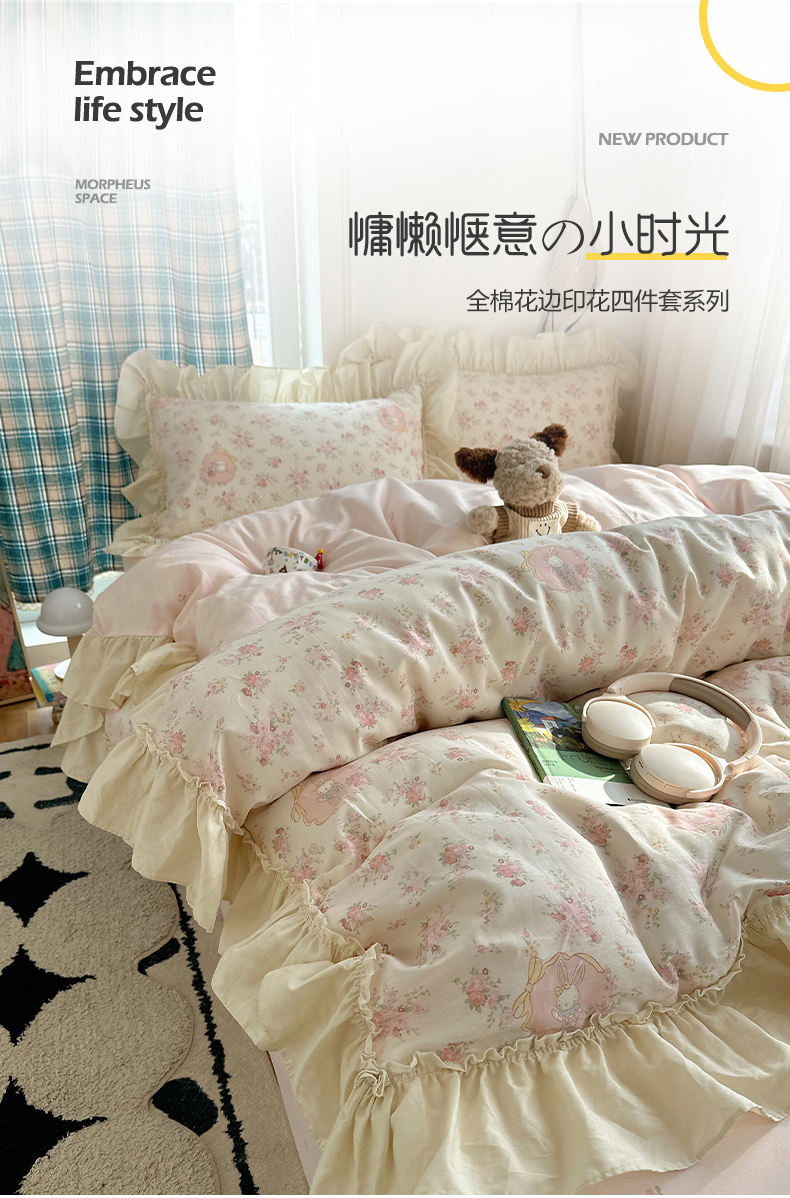 当前位置: 91家纺网 > 商品网购 > 床品套件 > 四件套 > 全棉普通四件套 > 瑞莱 2026春夏新款全棉纯棉印花韩系卡通花边四件套 爱丽丝花园