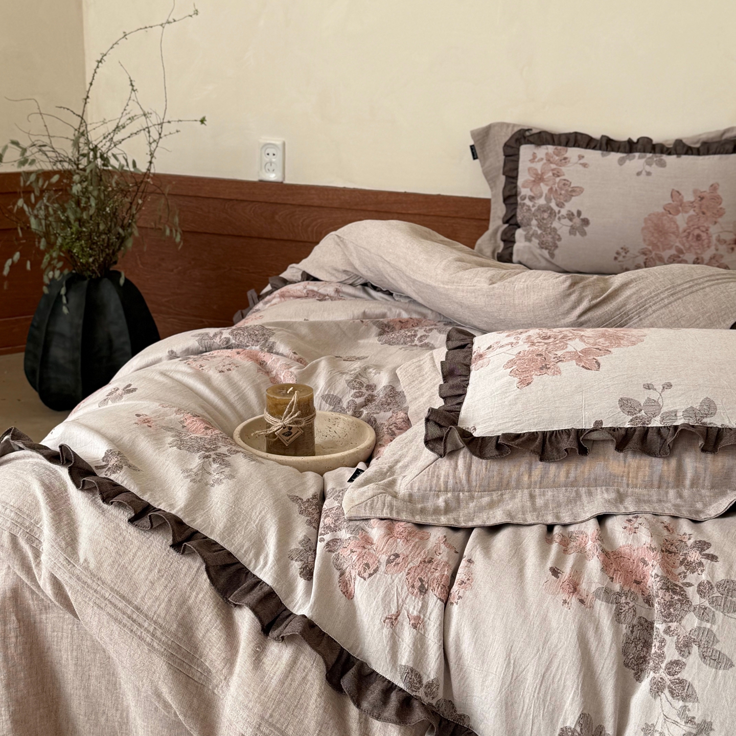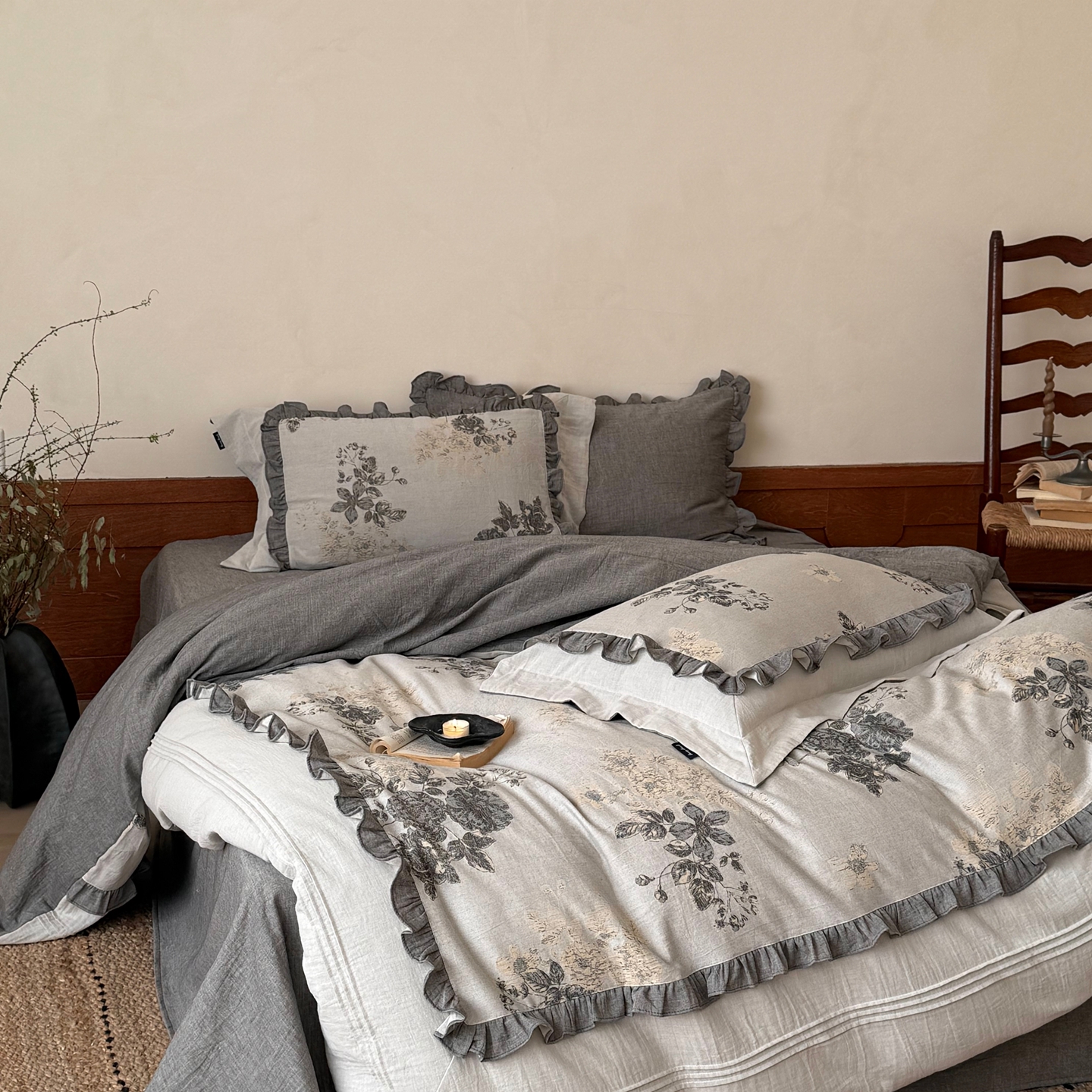 (总)佳汐蓝家纺 2026春夏新款棉麻皱皱双层纱四件套-古风铃岚 控价:卷后不低于398,古风铃岚