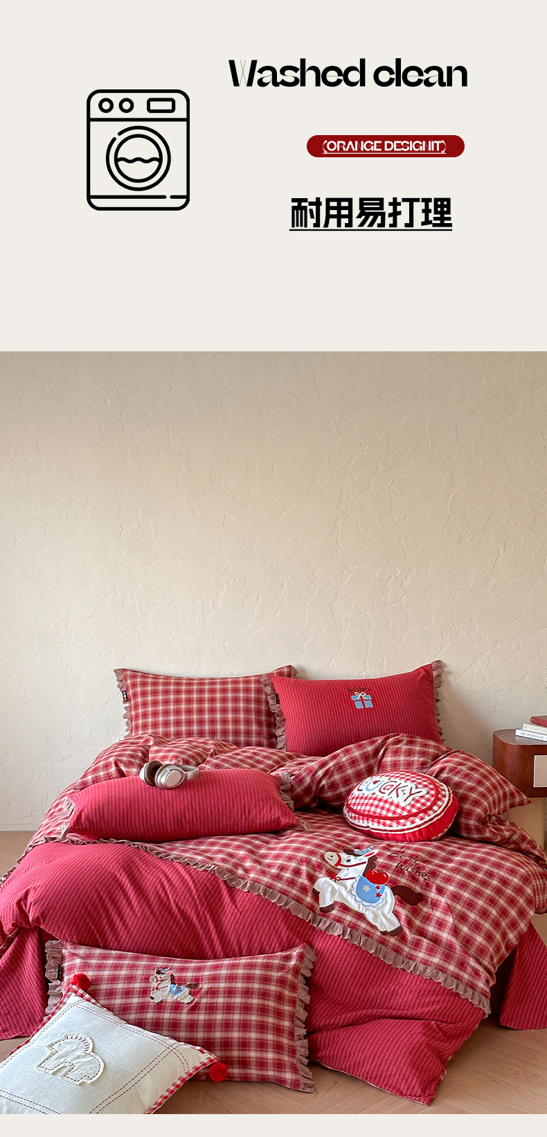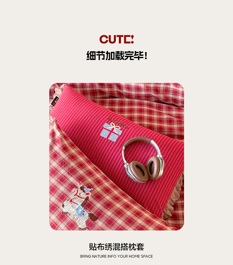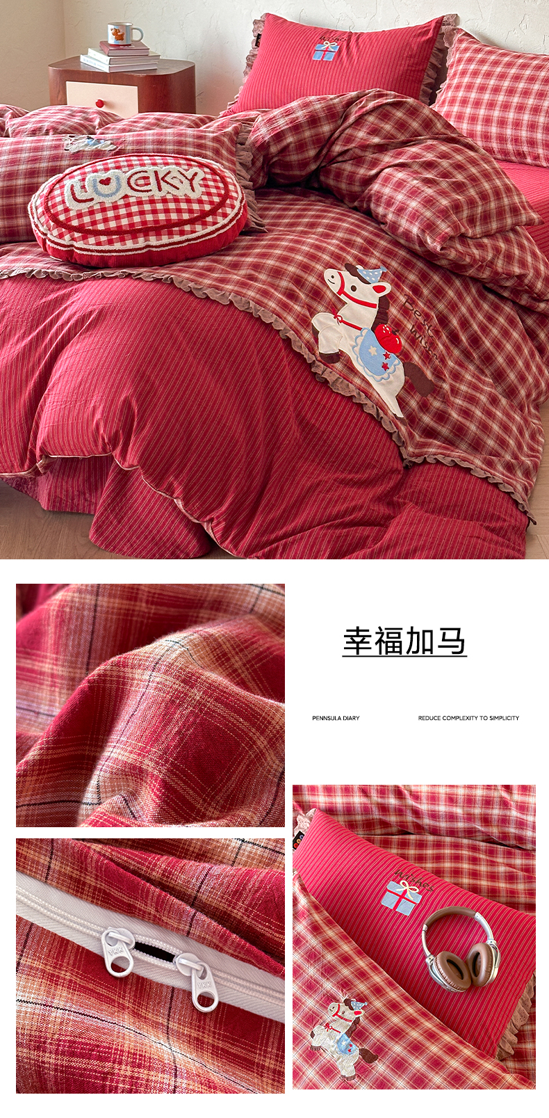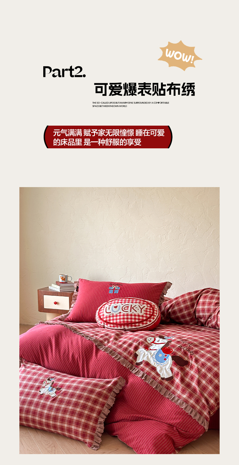 当前位置: 91家纺网 > 商品网购 > 床品套件 > 四件套 > 全棉普通四件套 > RYB红黄兰 2026新款设计师原创全棉色织水洗棉贴布绣三件套四件套 幸福加马