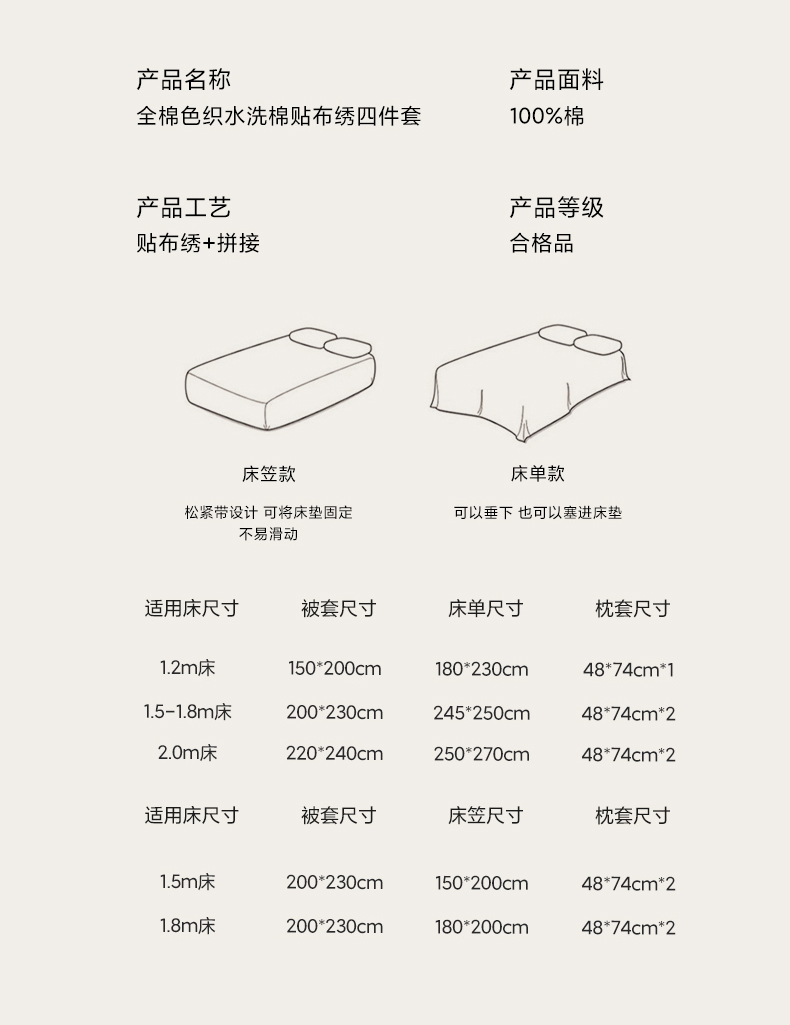 1.5m床笠款四件套-被套200*230cm | ¥195.00 |