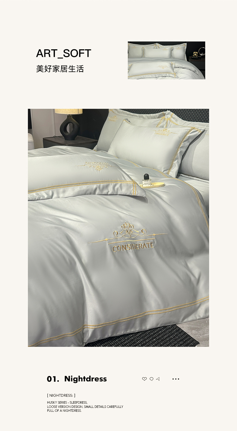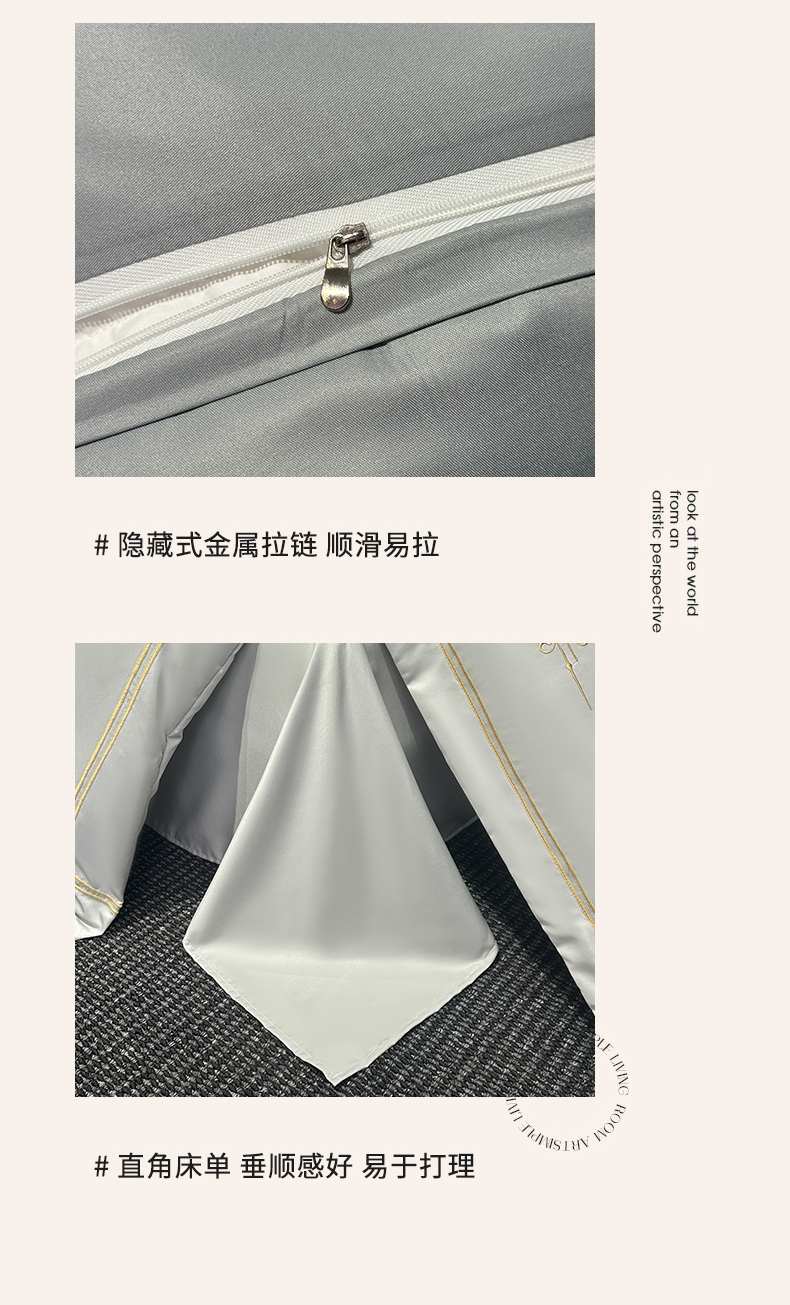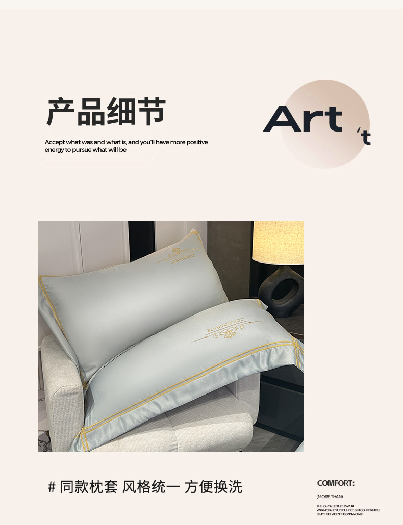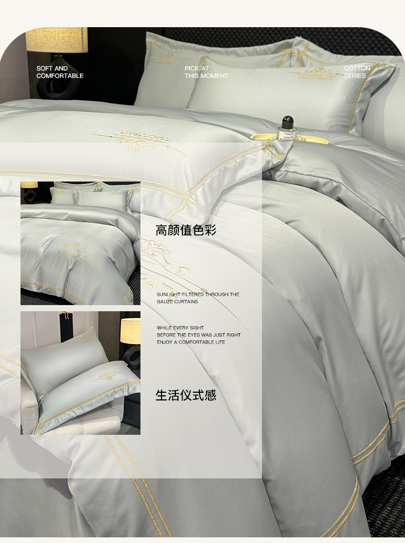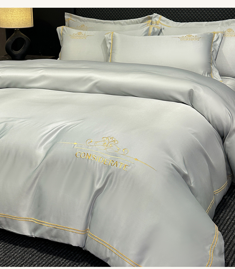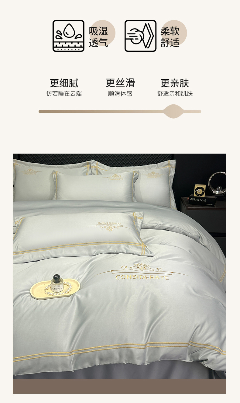 商品名称:绒掌柜家纺(品质焕新) 2026新款水洗真丝天丝冰丝刺绣四件套-典雅系列 浅灰