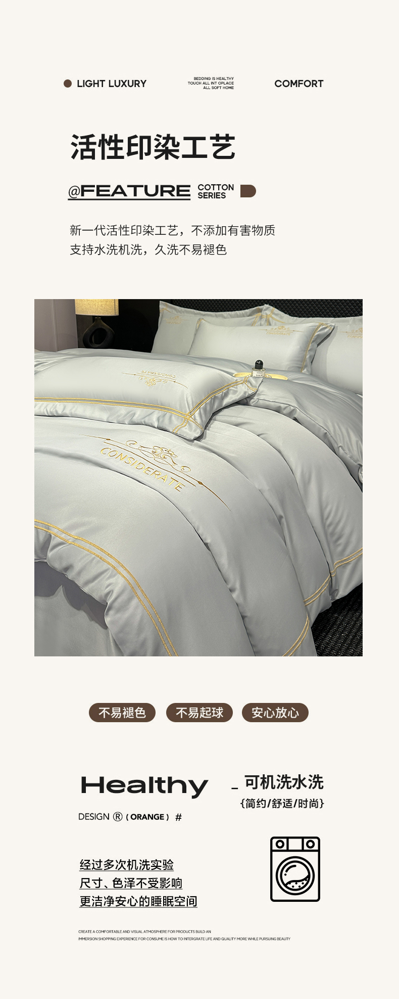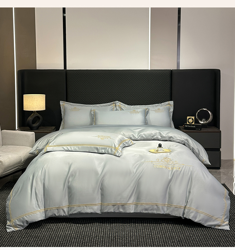 (总)绒掌柜家纺(品质焕新) 2026新款水洗真丝天丝冰丝刺绣四件套-典雅系列,宾利蓝,高级灰,墨绿,奶白,浅灰,少女粉,香槟,珍珠白