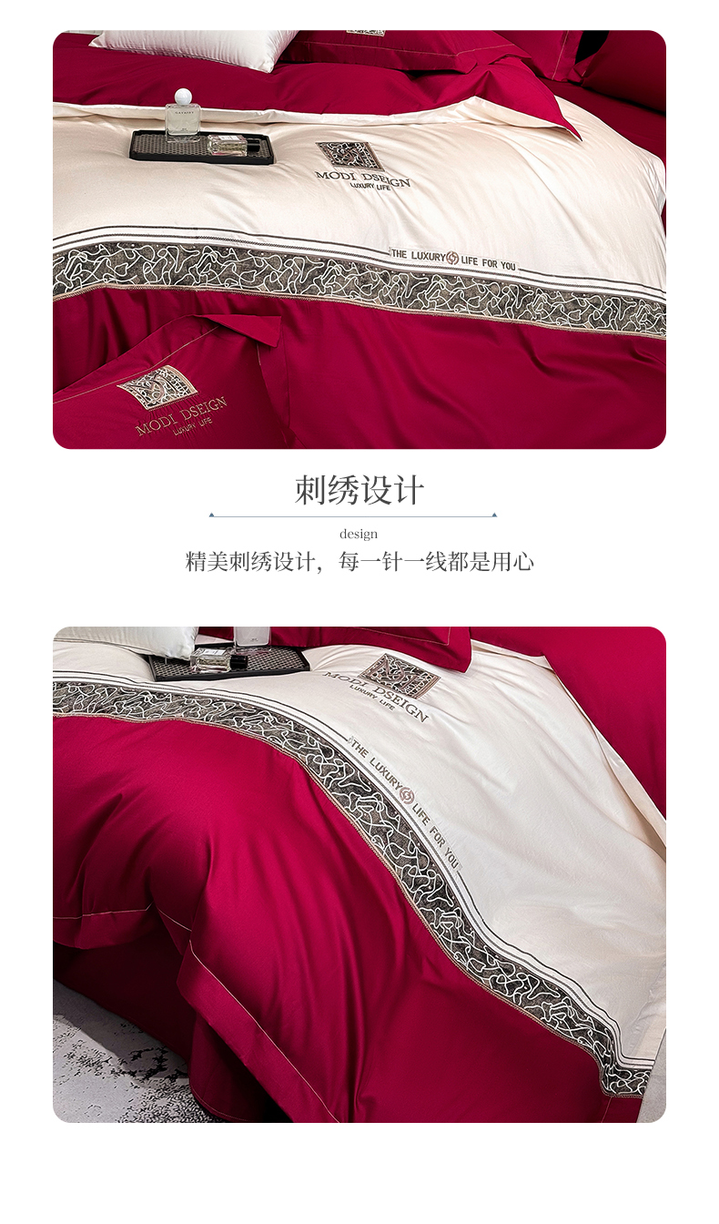 商品名称:苏美 2026春夏新款高档礼盒装50*50S贡缎长绒棉刺绣四件套100%纯棉全棉轻奢床品-星空 星空-红