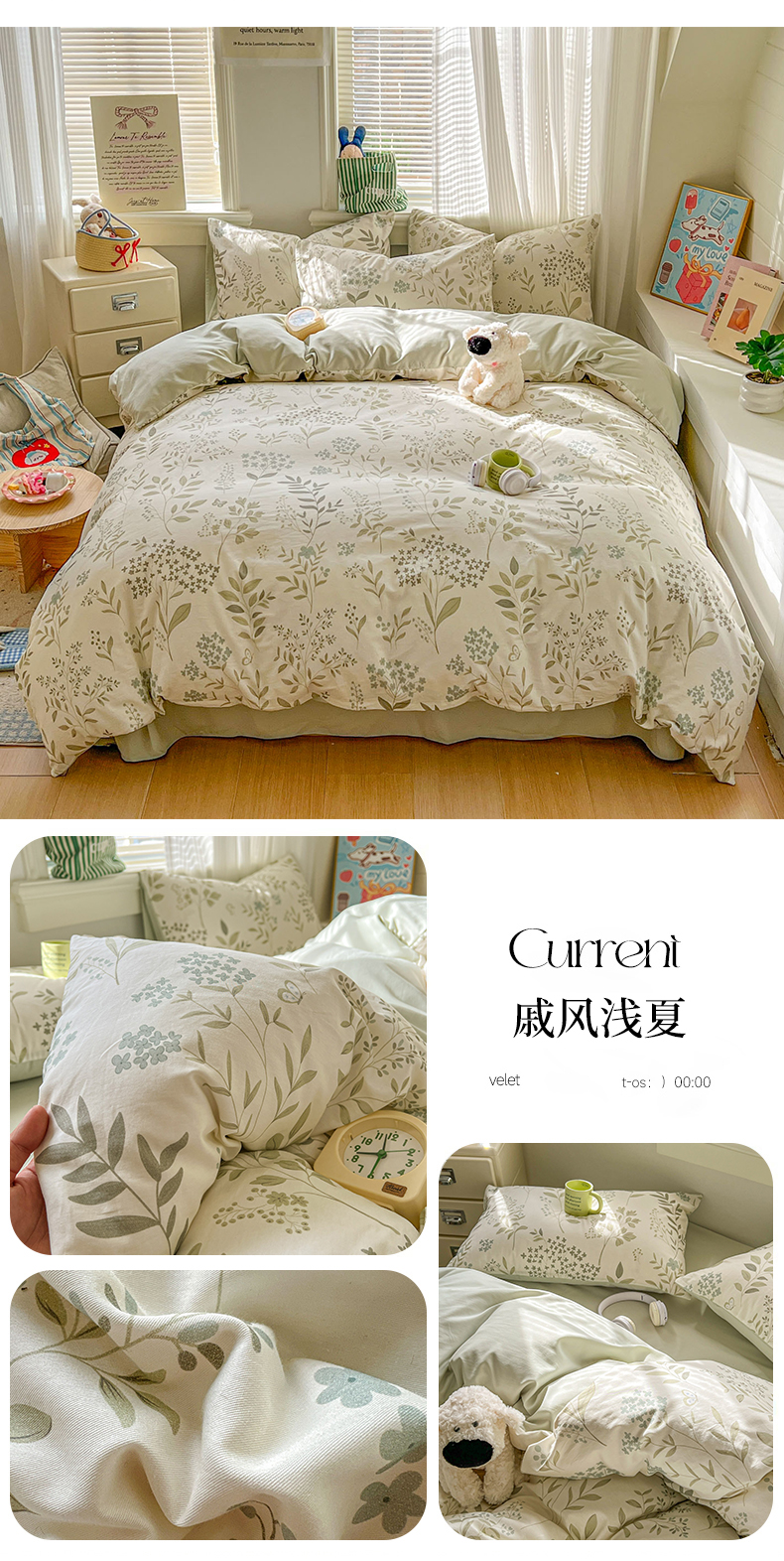 当前位置: 91家纺网 > 商品网购 > 床品套件 > 四件套 > 全棉普通四件套 > 漫仙阁家纺 2026新款纯棉学生宿舍A版100%新疆棉B版古法水洗三件套全棉四件套戚风浅夏