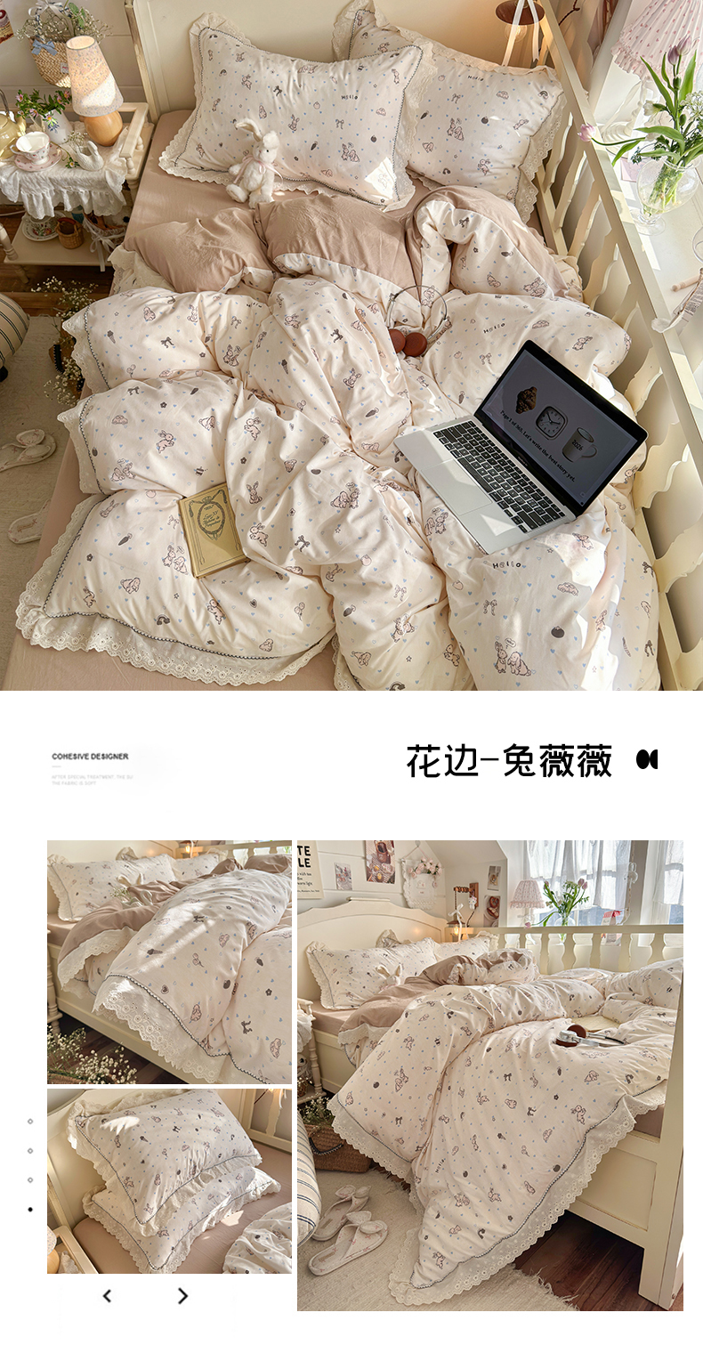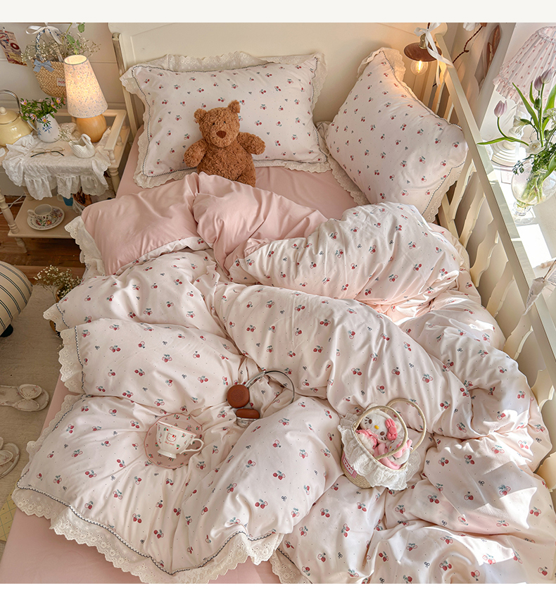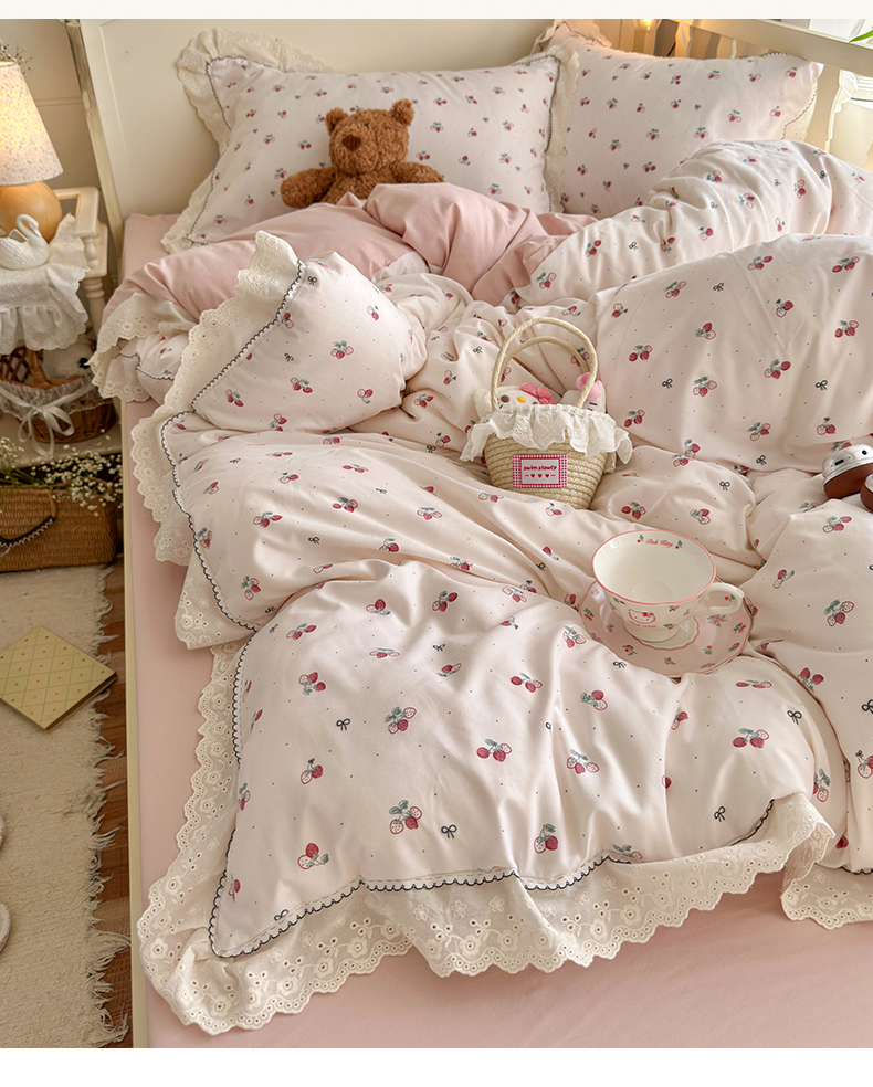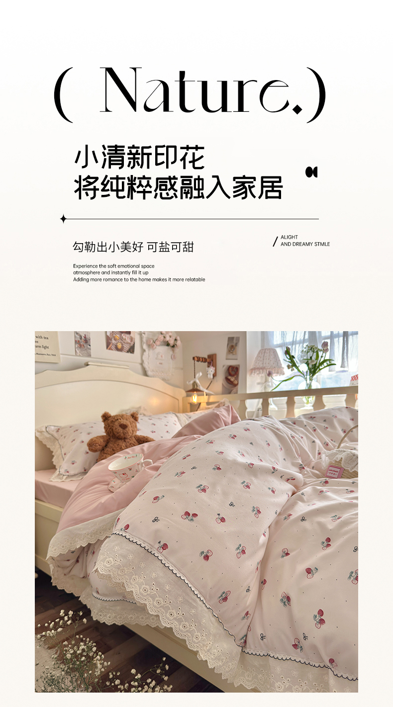 当前位置: 91家纺网 > 商品网购 > 床品套件 > 四件套 > 其它四件套 > 海岛哥哥 2026新款仿棉云柔纱韩版双花边四件套 花边-小草莓